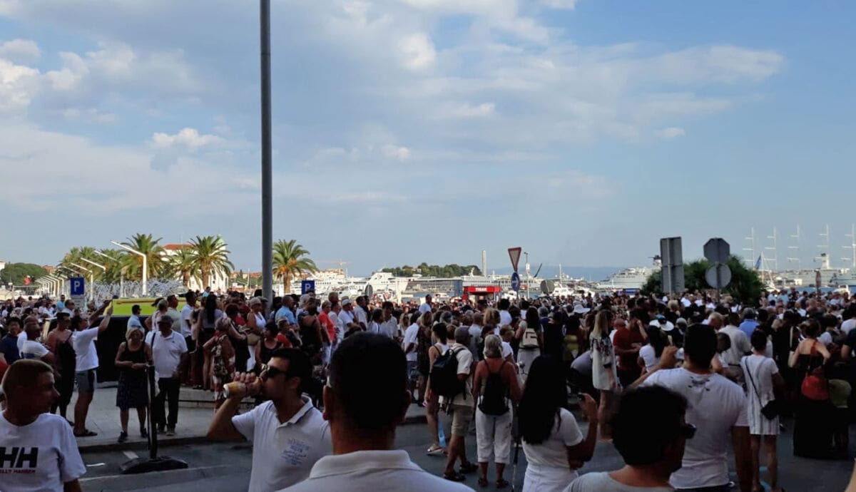 19:36 - Lijes je stigao do Lučke kapetanije. Ljudi plaču, plješću i pjevaju. Većina ovaj trenutak slikaje i snima mobitelima.