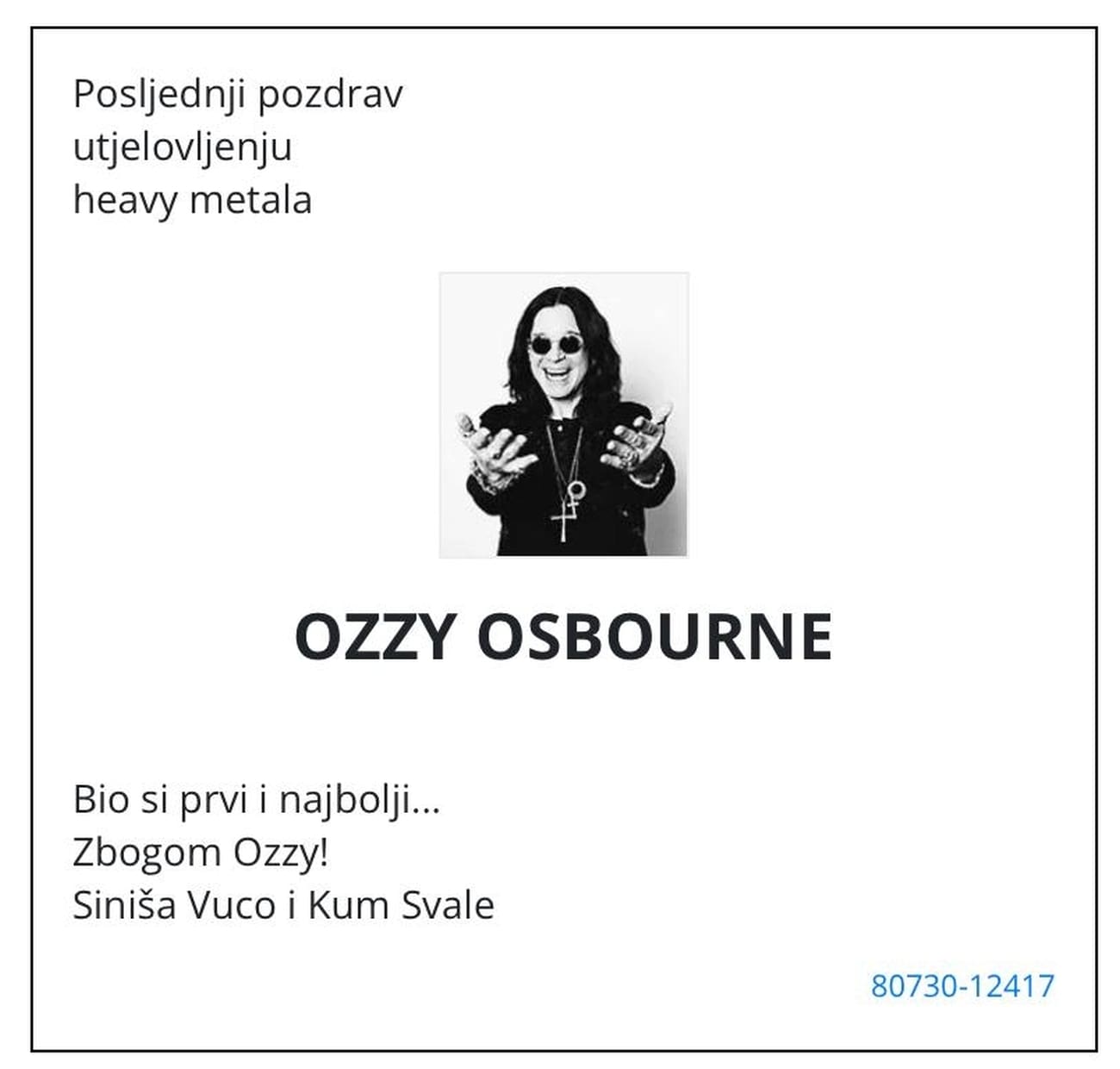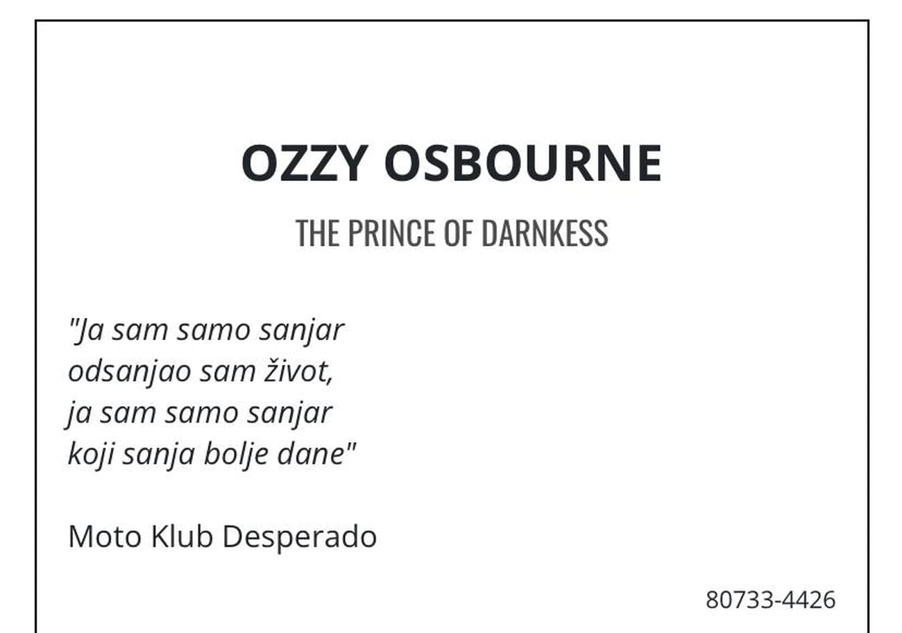 Uz ove riječi, dodali su njegov poznati nadimak – The Prince of Darkness – te jednostavno i snažno: Ozzy Osbourne.