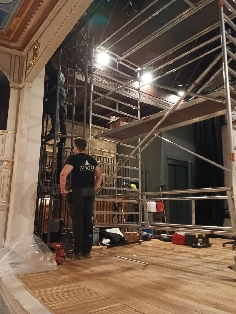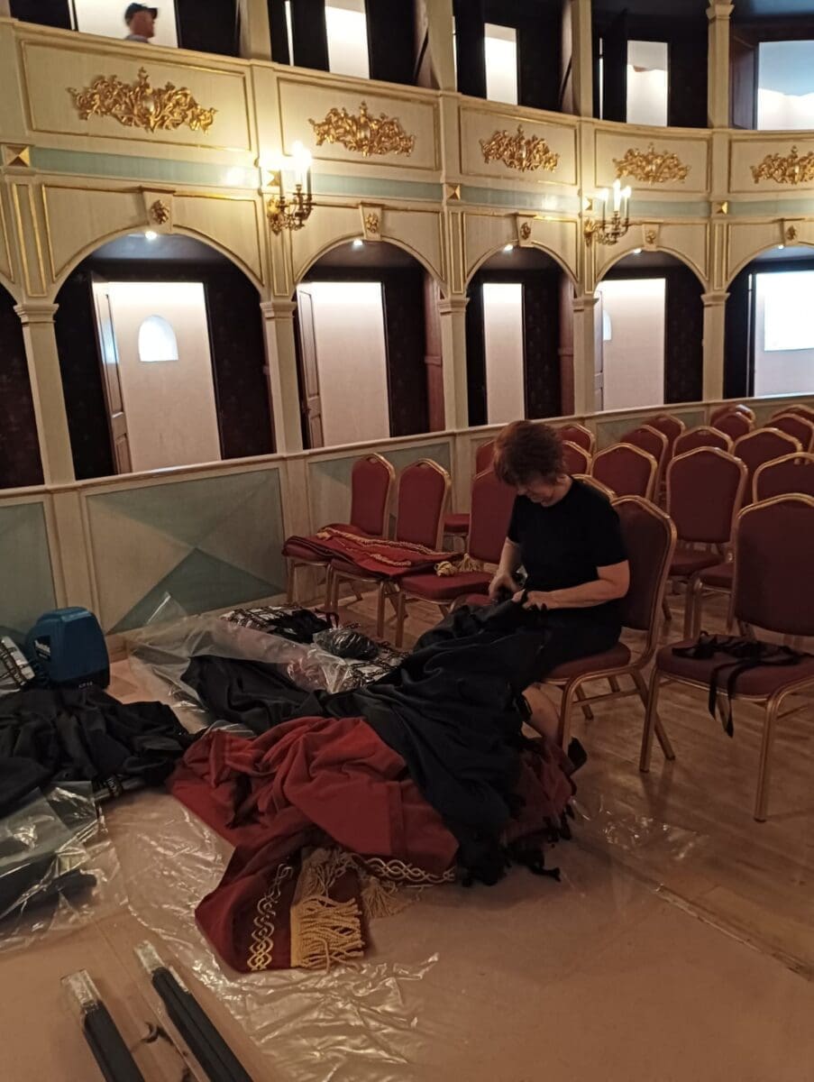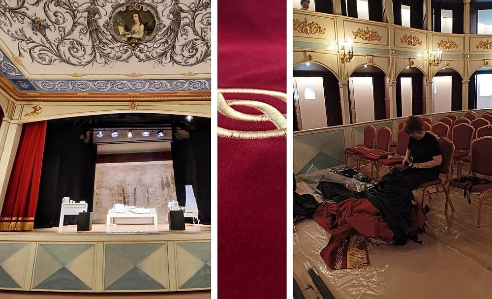 Montaža glavnog zastora s harlekinom i podlogom izrađenom od kazališnog pliša otpornog na vatru, s ostalom kazališnom draperijom, zadnjim i bočnim zastorima, započeta prije dva dana, bit će gotova do kraja ovog tjedna, izvijestili su iz Grada Hvara.