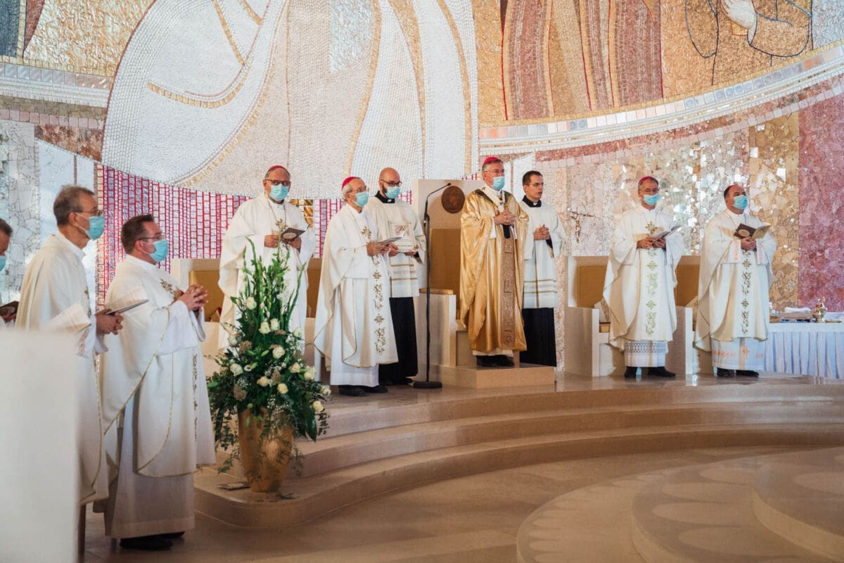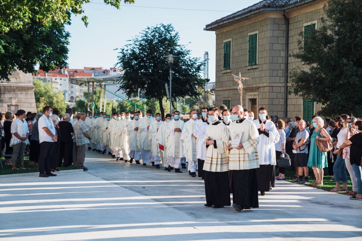 Mons. Marin Barišić predvodio je misno slavlje, a u koncelebraciji su bili predsjednik Hrvatske biskupske konferencije i zadarski nadbiskup mons. Želimir Puljić, novoimenovani nadbiskup koadjutor Splitsko-makarske nadbiskupije mons. Dražen Kutleša, šibenski biskup mons. Tomislav Rogić, mostarsko-duvanjski biskup mons. Petar Palić, provincijal Franjevačke provincije Presvetog Otkupitelja fra Marko Mrše, generalni vikar Splitsko-makarske nadbiskupije mons. Miroslav Vidović i brojni drugi dekani, župnici te ostali svećenici.