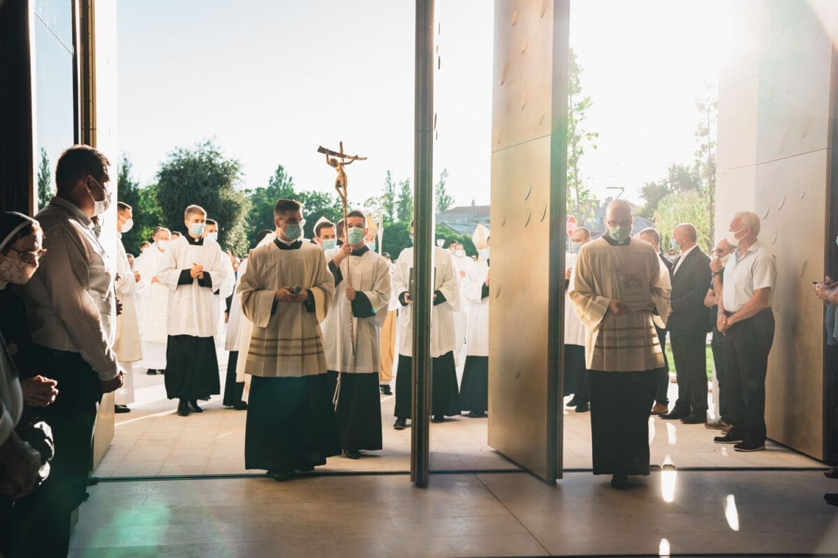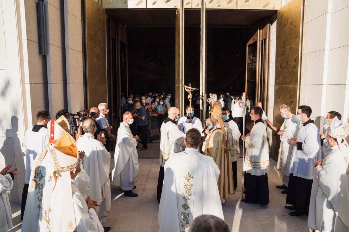 Velika svečanost za građane Solina započela je svečanim ophodom od crkve Gospe od Otoka do nove crkve Svete Obitelji na čijem su ulazu Joško Galić i Dalibor Kasalo predali nadbiskupu Barišiću završno izvješće o završetku radova i uporabnu dozvolu za pastoralni centar i novu crkvu.