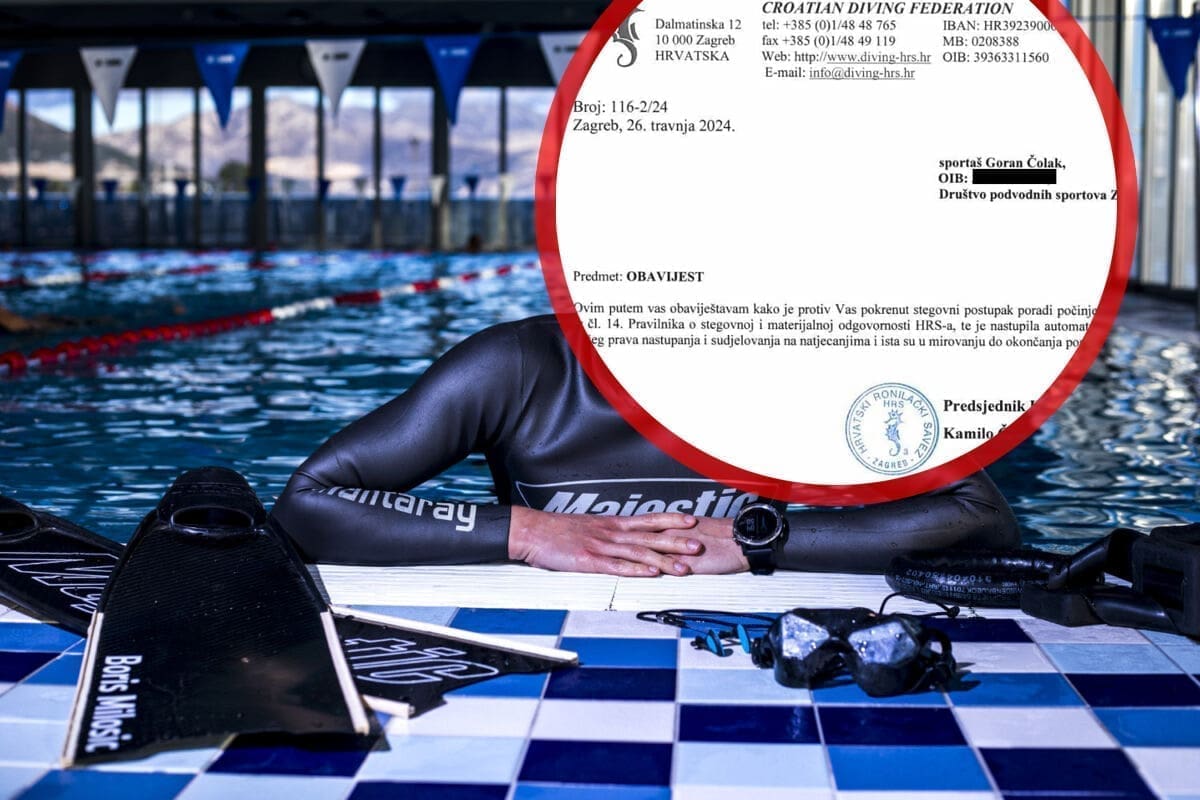- Ovim putem vas obavještavam kako je protiv Vas pokrenut stegovni postupak, poradi počinjenja prekršaja iz članka 14. Pravilnika o stegovnoj i materijalnoj odgovornosti HRS-a, te je nastupila automatska suspenzija vašeg prava nastupanja i sudjelovanja na natjecanjima i ista su u mirovanju do okončanja postupka - stoji u obavijesti koju potpisuje predsjednik Hrvatskog ronilačkog saveza, Kamilo Čuljak.