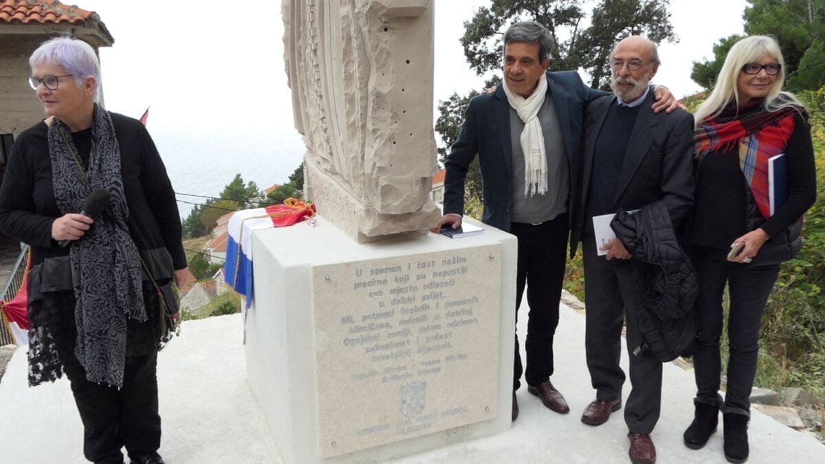 Samo dan nakon predstavljanja knjige u Omišu, autori su došli u rodno mjesto svojih predaka da bi otkrili spomen ploču koja je postavljena ispred galerije Mimice, a čemu su nazočili brojni Mimičani, ali i njihovi gosti.