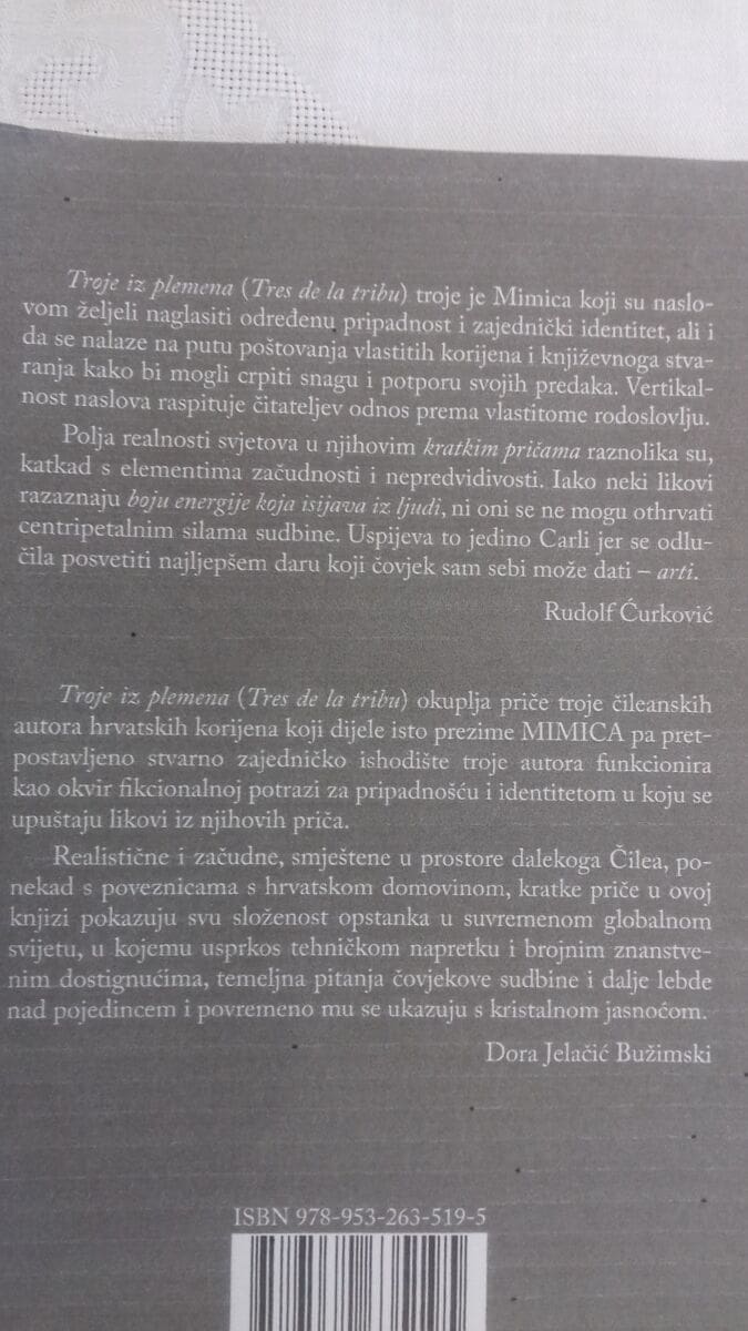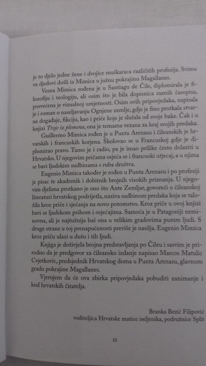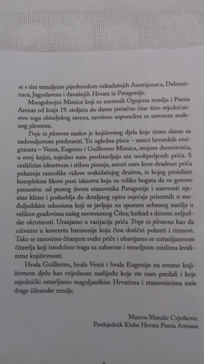 U prostorijama Gradske knjižnice Omiš, povodom mjeseca hrvatske knjige, održano je predstavljanje zajedničke zbirke pripovijetki "Troje iz plemena" koju potpisuju čileanski pisci hrvatskog podrijetla Vesna Mimica, Eugenio Mimica i Giullermo Mimica.