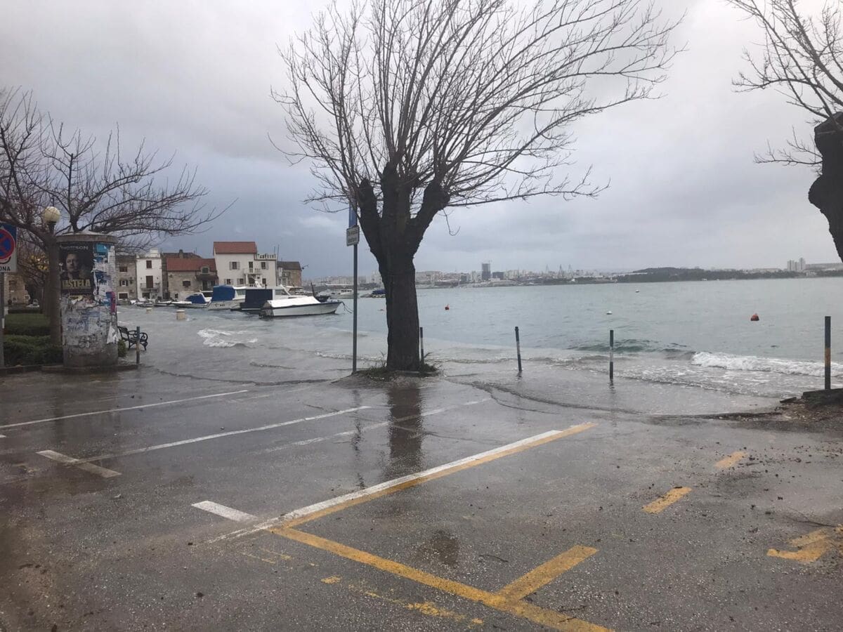 Zbog prelijevanja mora preko obale, zatvorena je cesta u Kaštel Sućurcu, uzduž Obale kralja Tomislava.