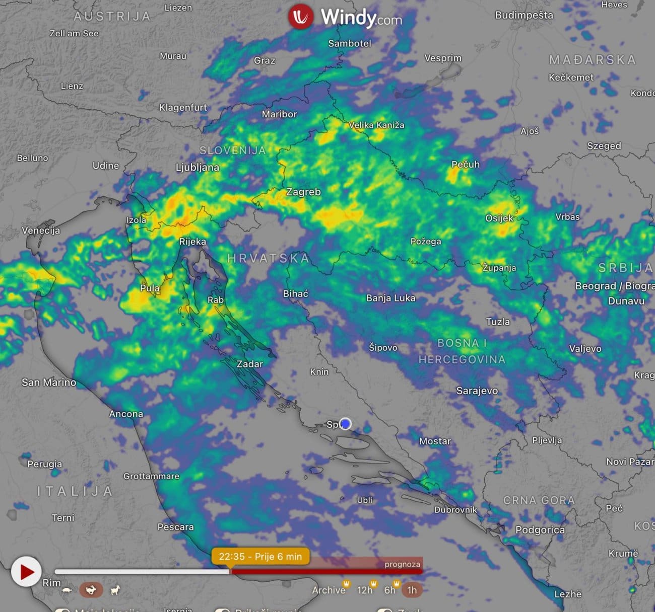 Nestabilno će biti noćas kada će i u Dalmaciji mjestimice pasti preko 20 mm kiše, a vrijeme će se postupno stabilizirati u drugom dijelu dana. Bit će još malo toplije.