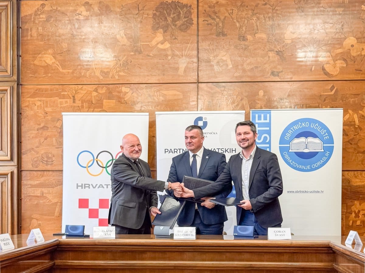 U ime partnera sporazum o suradnji potpisali su u Kući hrvatskih obrtnika predsjednik Hrvatske obrtničke komore (HOK) Dalibor Kratohvil, predsjednik Hrvatskog olimpijskog odbora (HOO) dr. sc. Zlatko Mateša i zamjenik ravnatelja Obrtničkog učilišta Goran Švast, uz nazočnost voditelja karijernog centra HOO-a i hrvatskih olimpijaca Snježane Pejčić i Vlade Šole te potpredsjednika HOK-a i predsjednika Obrtničke komore Zagreb Antuna Trojnara i predsjednika Udruženja obrtnika grada Zagreba Ivice Zanettija.