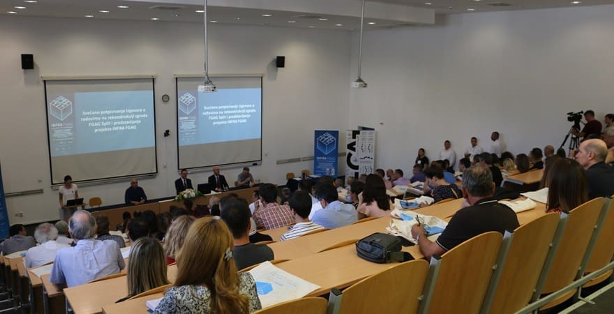 Svečano potpisivanje Ugovora o radovima na rekonstrukciji zgrada Fakulteta građevinarstva, arhitekture i geodezije u Splitu i predstavljanje EU projekta INFRA FGAG održano je u srijedu, 19. lipnja, u prostorijama Fakulteta.