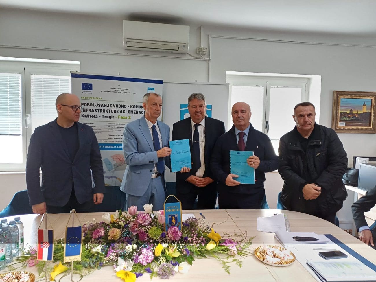 U prostorima Općine Okrug održano je svečano potpisivanje ugovora o radovima za izgradnju sustava odvodnje i vodoopskrbne mreže na području Okruga Gornjeg u okviru „B paketa“ projekta poboljšanja vodno-komunalne infrastrukture aglomeracije Kaštela-Trogir.