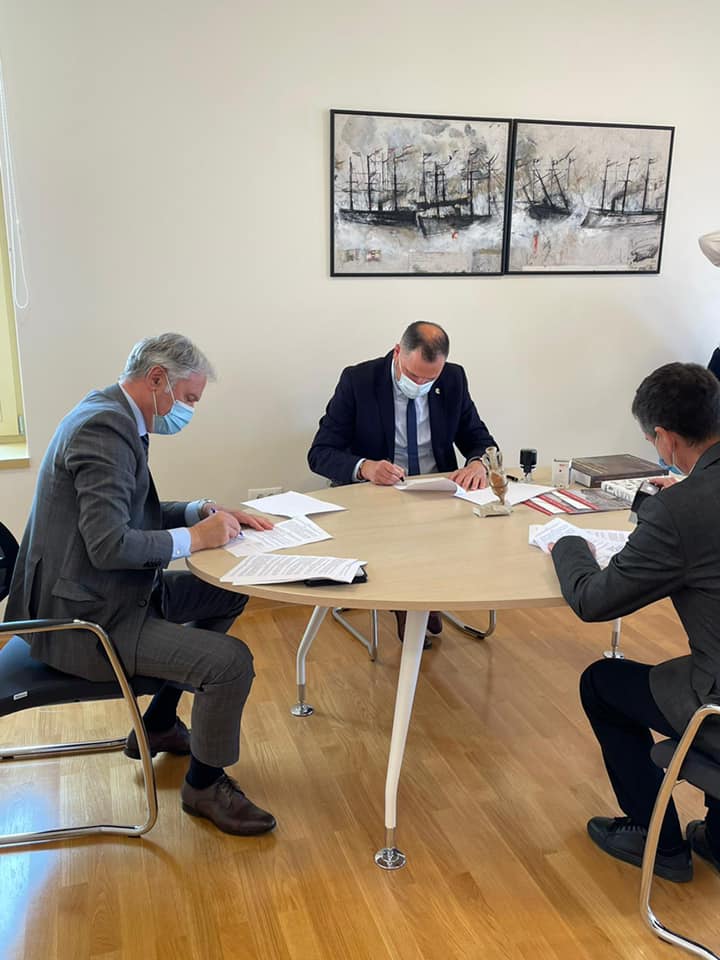 Tripartitni ugovor su potpisali; rektor Sveučilišta u Splitu prof. dr. sc. Dragan Ljutić, dekan Umjetničke akademije u Splitu izv. prof. art. Edvin Dragičević i v.d. ravnatelja Javne ustanove u kulturi Hrvatski dom Split Marin Kaporelo, spec. admin. publ.