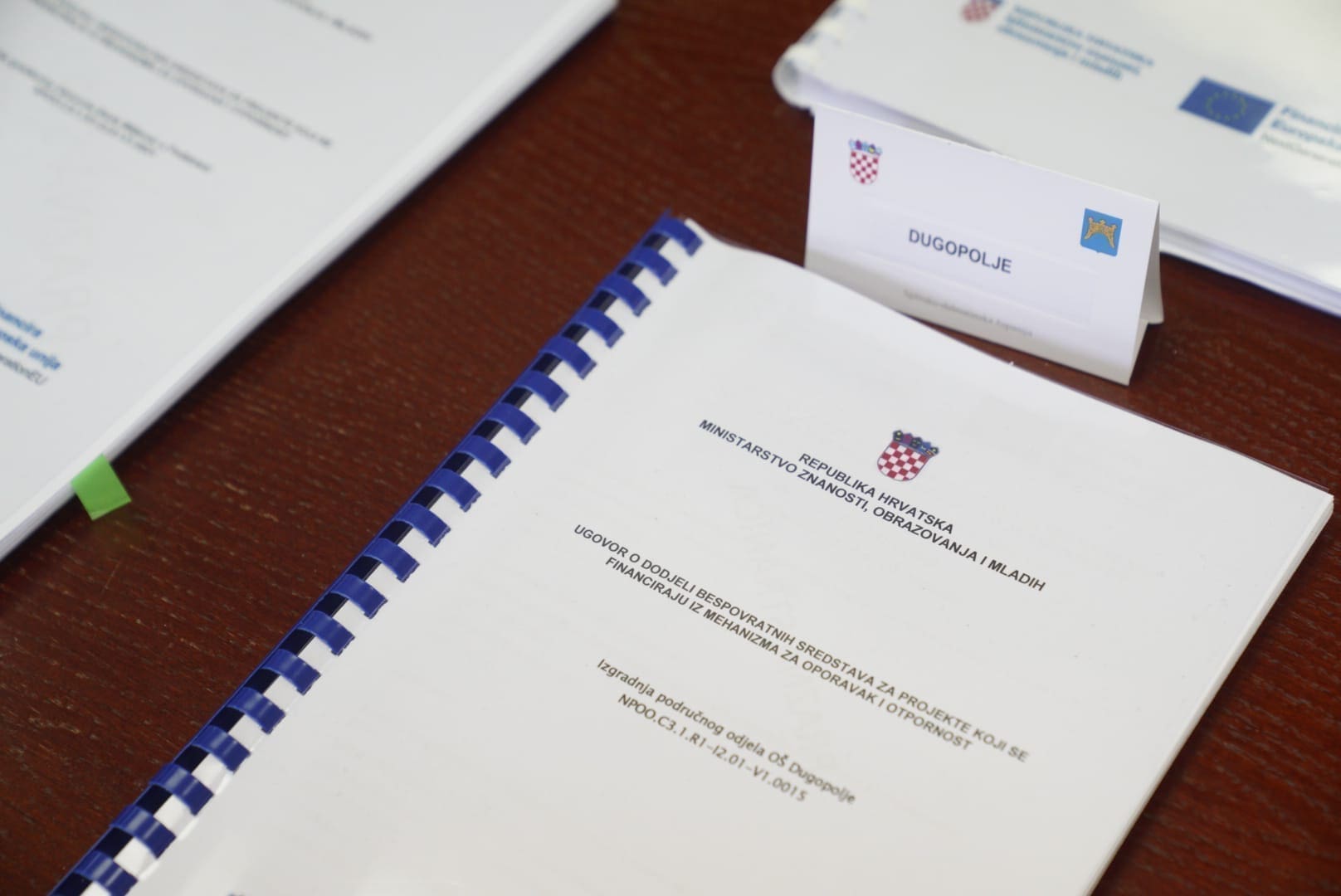 Ministar znanosti, obrazovanja i mladih Radovan Fuchs boravio je danas u Splitu gdje su potpisani ugovori za izgradnju osnovnih škola i dvorana u Splitsko-dalmatinskoj županiji. Nazočni su bili i župan Splitsko-dalmatinske županije Blaženko Boban, ravnatelj Središnje agencije za financiranje i ugovaranje programa i projekata EU Dragan Jelić, načelnici te ravnateljice i ravnatelji osnovnih škola na području općina Dugopolje, Podbablje, Podstrana, Postira i Šestanovac.