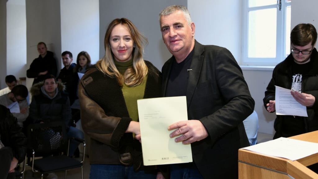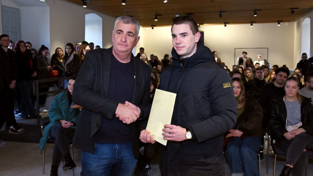 Ugovore je studentima uručio gradonačelnik Sinja Miro Bulj, uz nazočnost zamjenika Denisa Bobete.