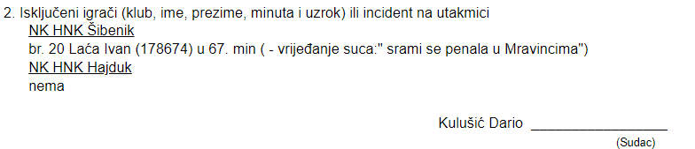 – Srami se penala u Mravincima! – što je uredno u zapisnik unio delegat Jure Zečević, a Kulušić Laći pokazao put u svlačionicu, javlja Dalmatinski nogomet.