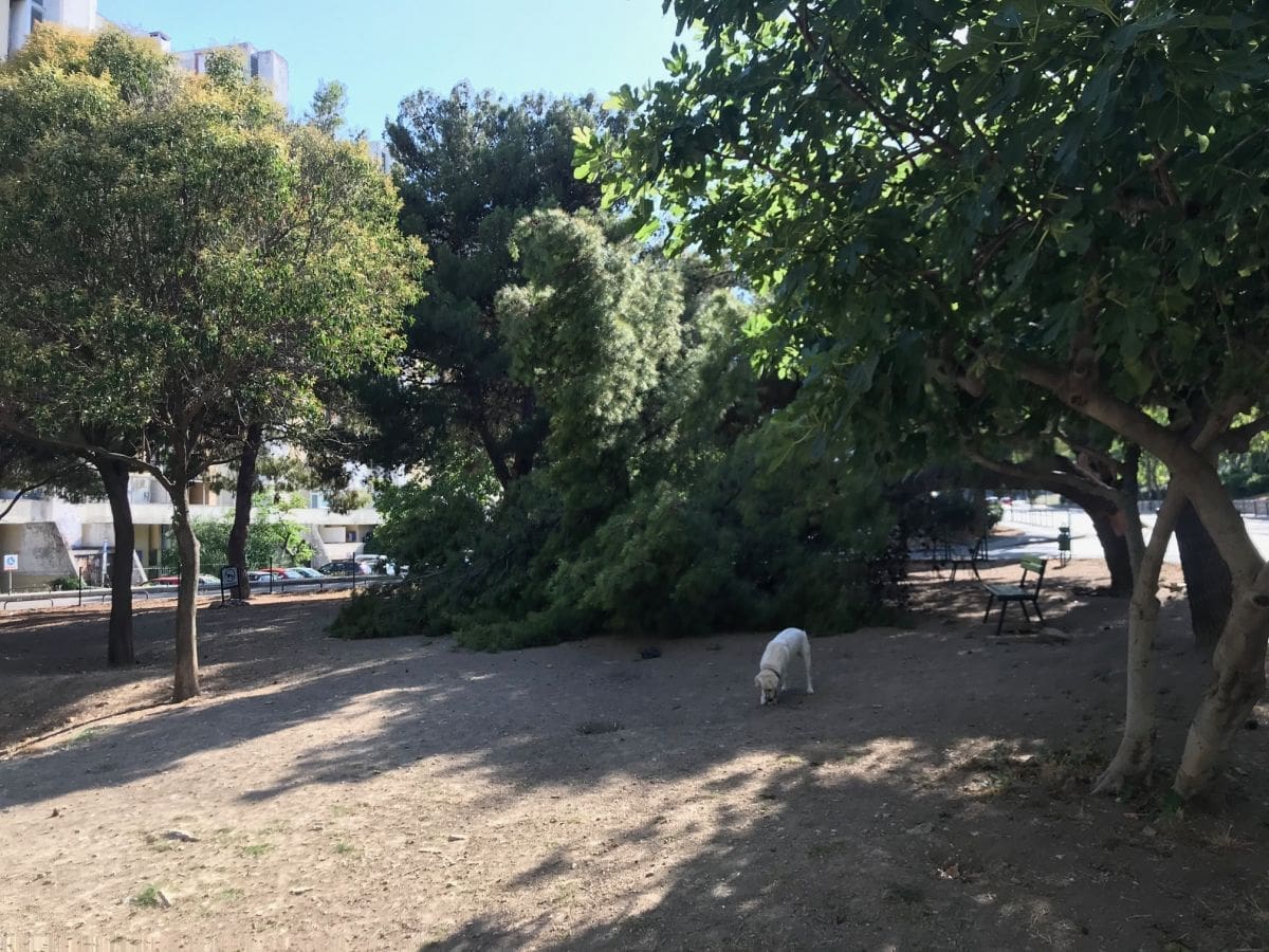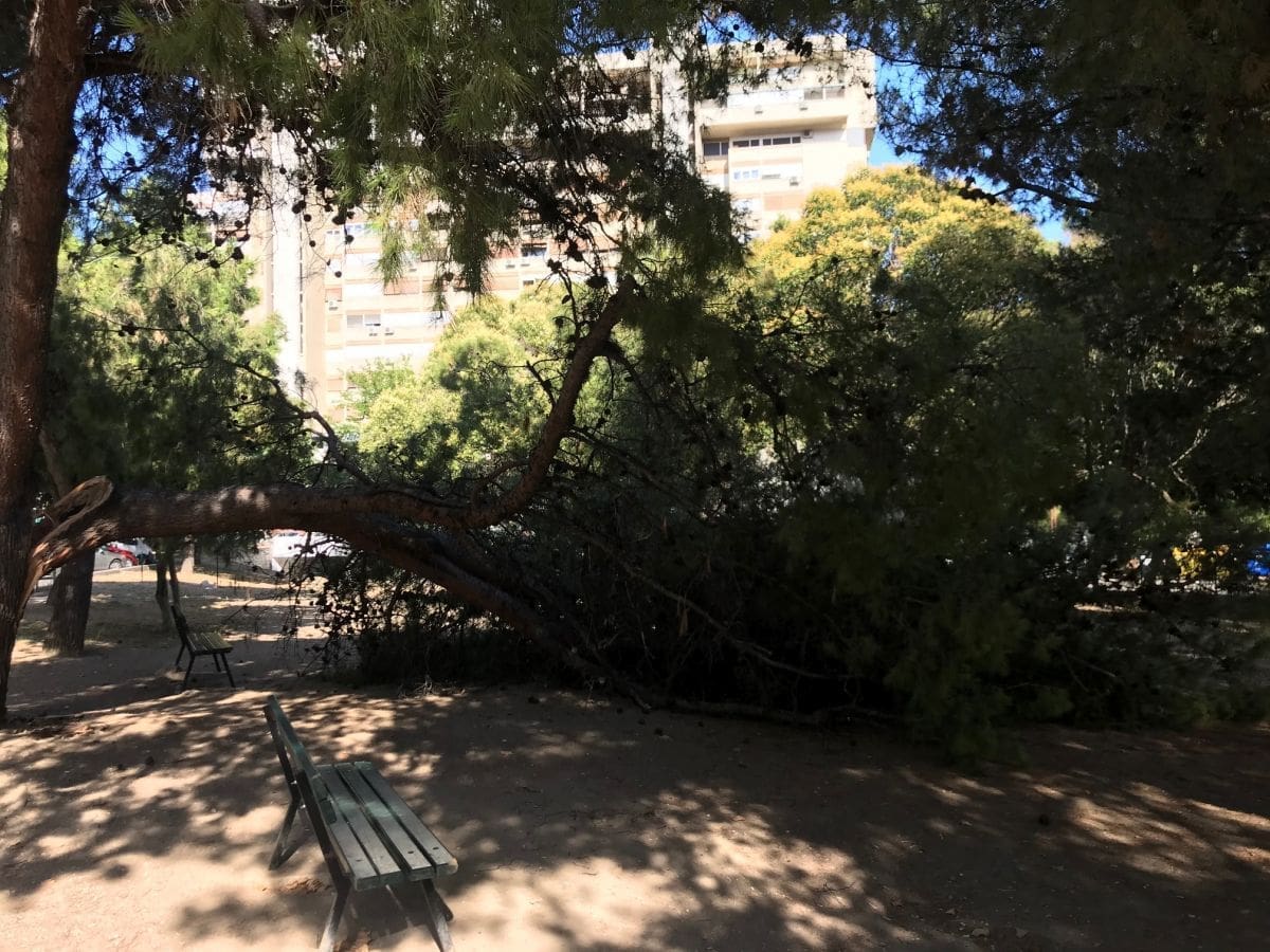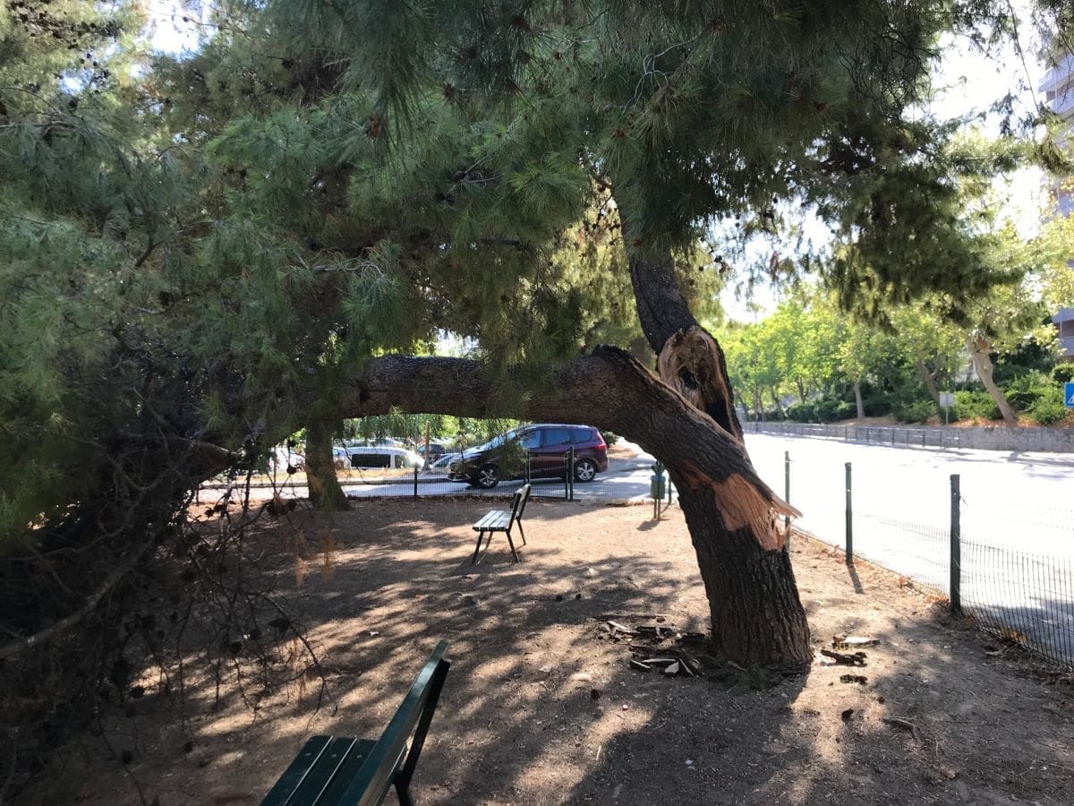 Parkić za pse na Splitu 3 dobio je preko noći "novi sadržaj": odlomilo se naime stablo, očigledno dosegnuvši pozne godine, a nije pomogla ni težina grana krcatih omiljenim psećim "igračkama", šišarkama.