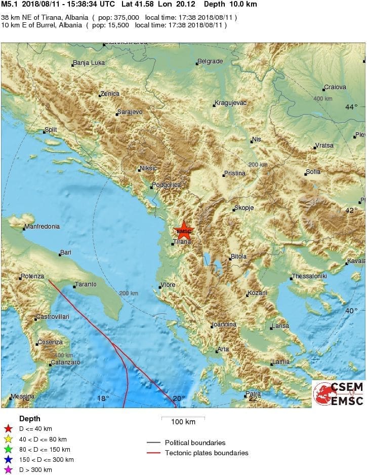 Epicentar je bio na dubini od 10 kilometara u albanskom gradu Peshkopea, 36 kilometara sjeveroistočno od Tirane.