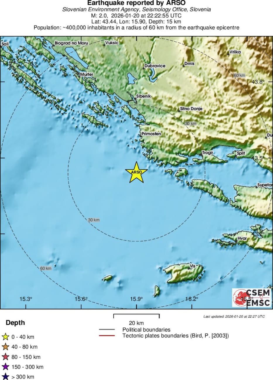 Prema podacima EMSC-a magnituda potresa bila je 2.0 prema Richteru, a epicentar je bio 44 kilometra zapadno-jugozapadno od Splita, odnosno 20 kilometara od Velog Drvenika.