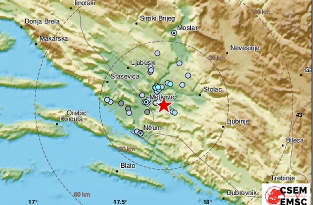 Sinoć nešto prije 21 sat dogodio se slabiji potres u dolini Neretve, s BiH strane granice.