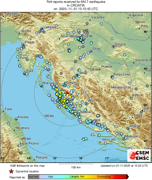 Danas u 14:15, sedam kilometara sjeverno od Starigrada Paklenice, dogodio se potres magnitude M 4.7 po Richteru, izvijestila je Seizmološka služba RH.