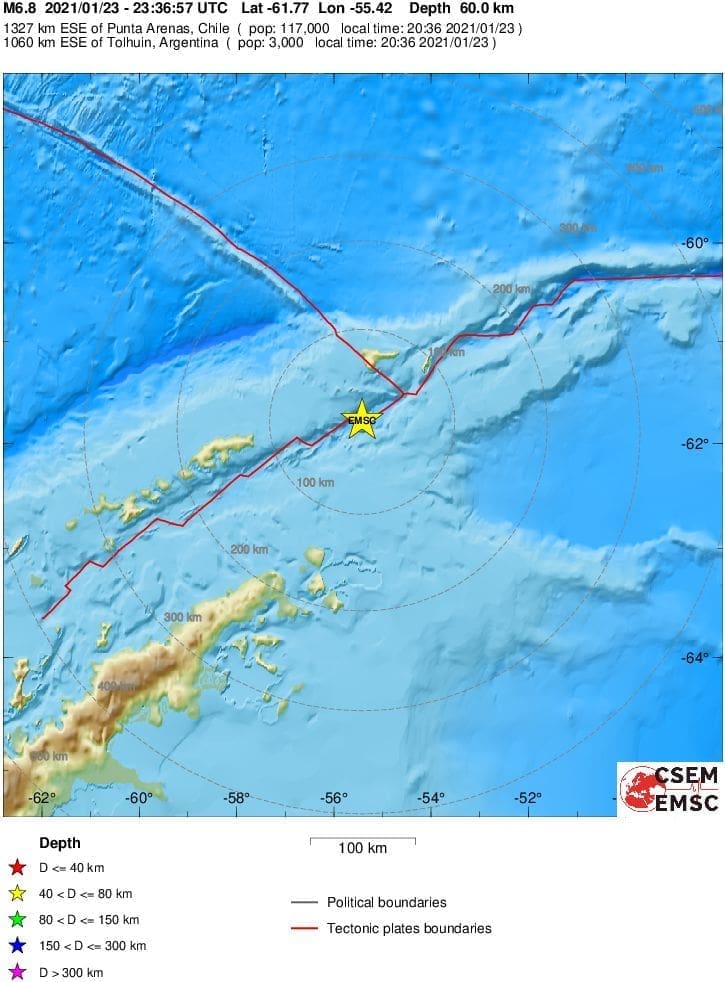 Potres je bio magnitude 7.1 prema Richteru, a epicentar 1333 kilometra istok-jugoistočno od Punta Arenasa u Čileu.