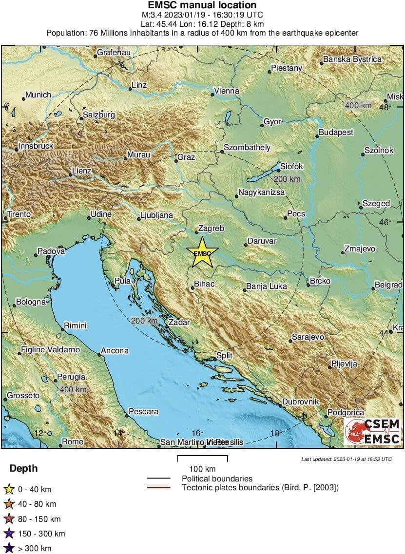Zatreslo je na dubini od 8 kilometara. Javljaju se i svjedoci.