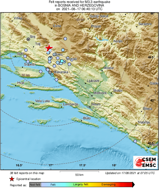 Felt #earthquake (#potres) M3.3 strikes 25 km NE of #Makarska (#Croatia) 21 min ago. Please report to: https://t.co/oAMvjeaKVg pic.twitter.com/cFKONZyzS8