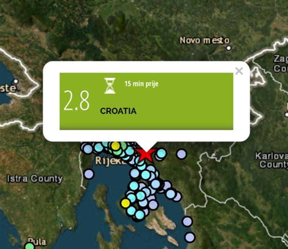 U četvrtak ujutro, u 7.48 sati, slab potres magnitude 1,9 prema Richteru osjetio se na području blizu Rijeke. Epicentar se nalazio u okolici Zlobina, a intenzitet u epicentralnom području iznosio je III stupnja EMS ljestvice. Iako su prva izvješća ukazivala na jačinu od 2,4, naknadna mjerenja pokazala su drugačije.