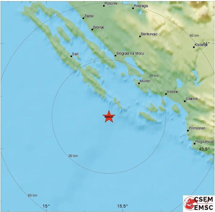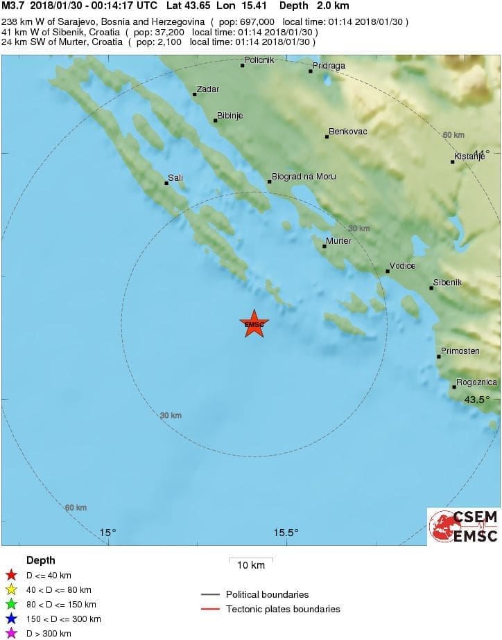 Europski mediteranski seizmološki centar u 01:14 sati zabilježio je potres magnitude 3.7 po Richteru koji je nastao samo 24 kilometra od Murtera.