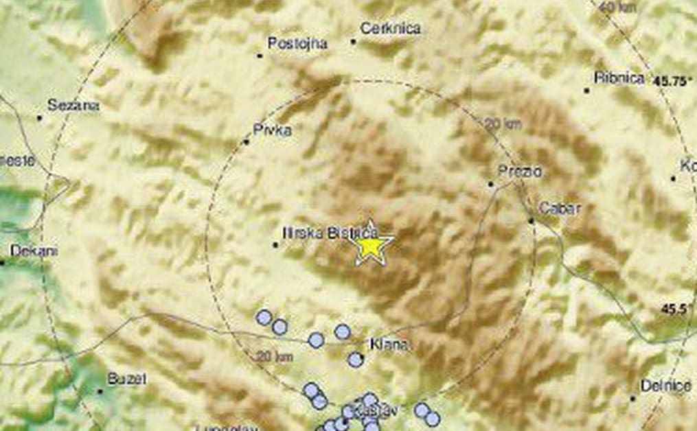 Slabi potres magnitude 2,1 zatresao je Sloveniju u subotu ujutro oko 7:14, 11 kilometara sjeveroistočno od Ilirske Bistrice.