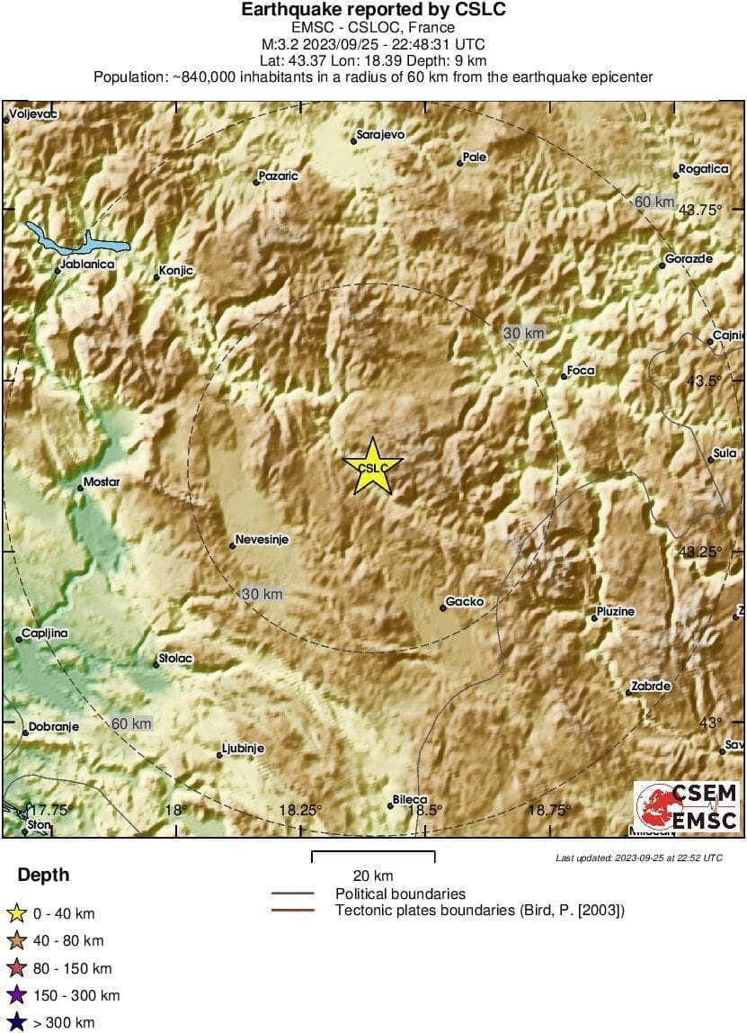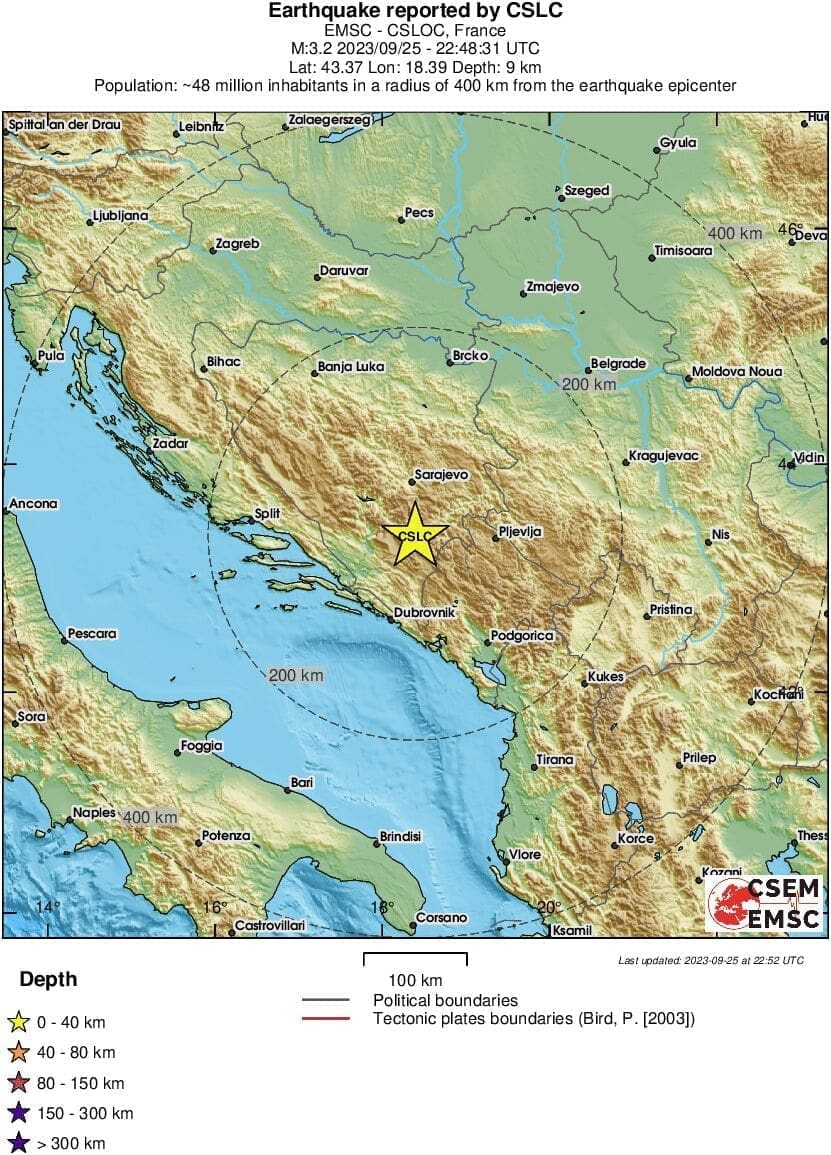 U ponoć i 48 minuta umjereno jak potres osjetio se u južnoj Bosni i Hercegovini.