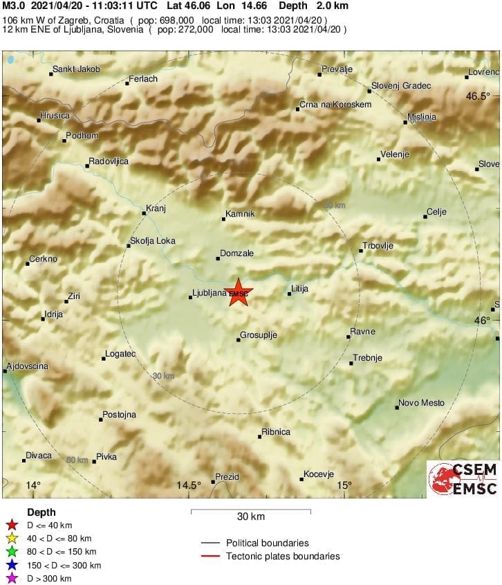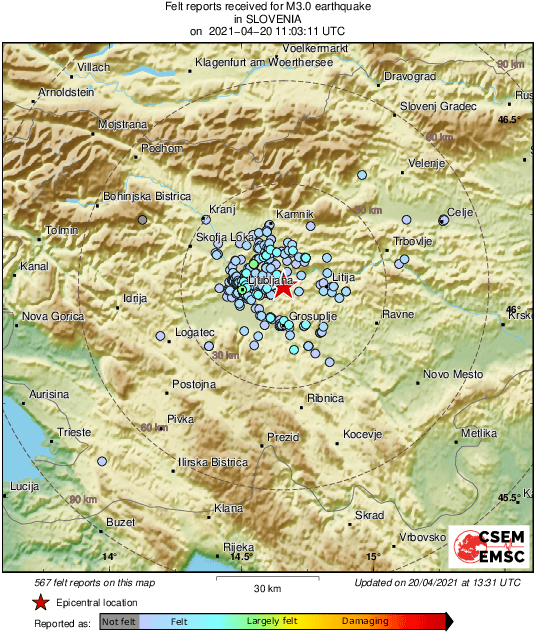 Prema podacima EMSC-a, magnituda mu je iznosila 3.0 prema Richteru, a epicentar je bio 12 kilometara istok-sjeveroistočno od Ljubljane.