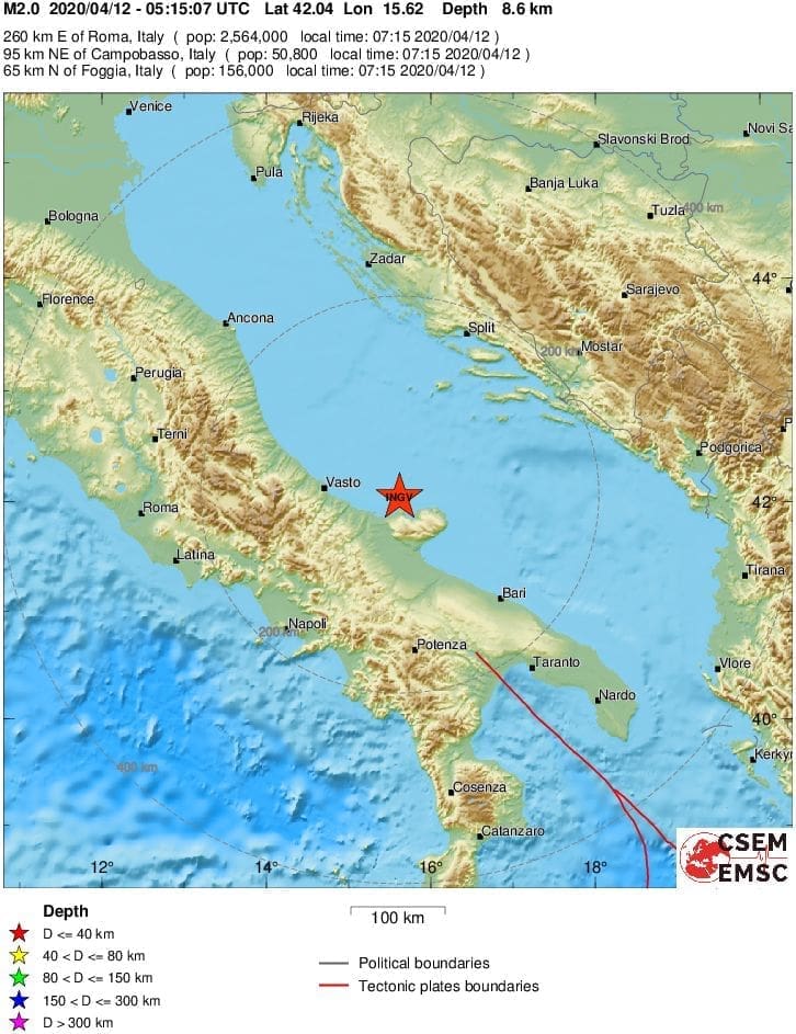 Danas u 7 sati i 15 minuta dogodio se potres slabije jakosti u talijanskom dijelu Jadrana. Prema podacima EMSC-a, intenzitet potresa u epicentru bio je 2.0 po Richteru.