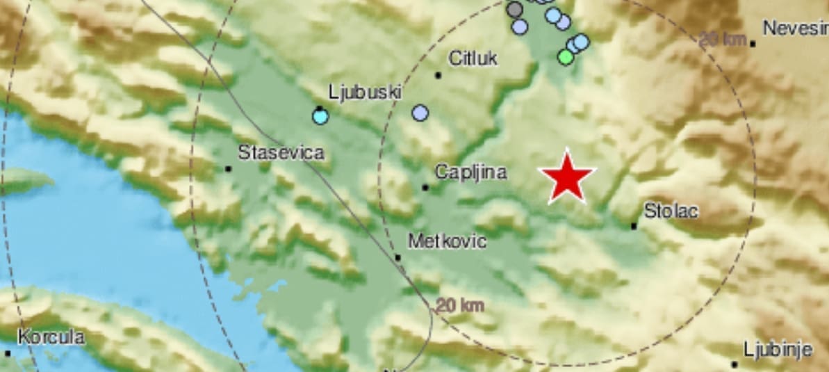 Dubina potresa procjenjuje se na 10 kilometara, a osjetili su ga stanovnici južne Dalmacije i doline Neretve.