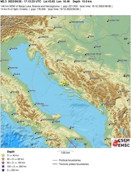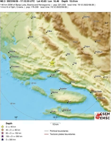 U 19 sati i U 19 sati i 12 minuta dogodio se slab potres u splitskom zaleđu.