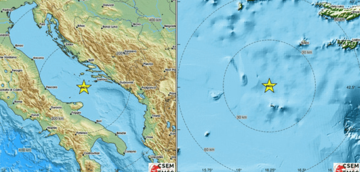 Epicentar potresa zabilježen je u Jadranu 113 kilometara južno od Splita i točno 70 kilometara sjeverno od Italije.