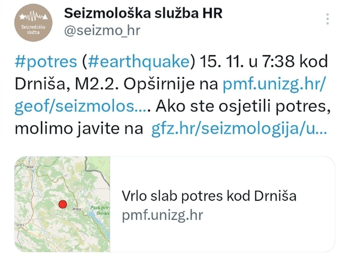 Ovo slabije podrhtavanje najviše su osjetili stanovnici Drniša i okolice.