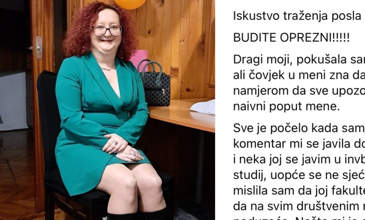 Sve je počelo kada sam stavila objavu kako tražim posao. U komentar mi se javila dotična ženska osoba s porukom da ima posao i neka joj se javim u invbox. Zajedničko nam je to što smo završile isti studij, uopće se ne sjećam lica dotične niti išta znam o njoj, no mislila sam da joj fakultet daje svojevrsni kredibilitet, kao i činjenica da na svim društvenim mrežama piše da je CEO i OWNER dva poduzeća. Nešto mi je od prve poruke govorilo da se maknem što dalje, ali znate moć napisanog i što je sve osoba spremna učiniti za posao kada joj očajno treba.