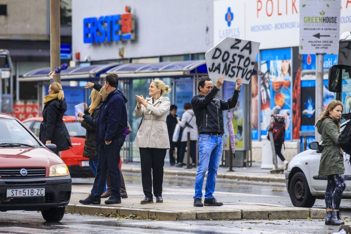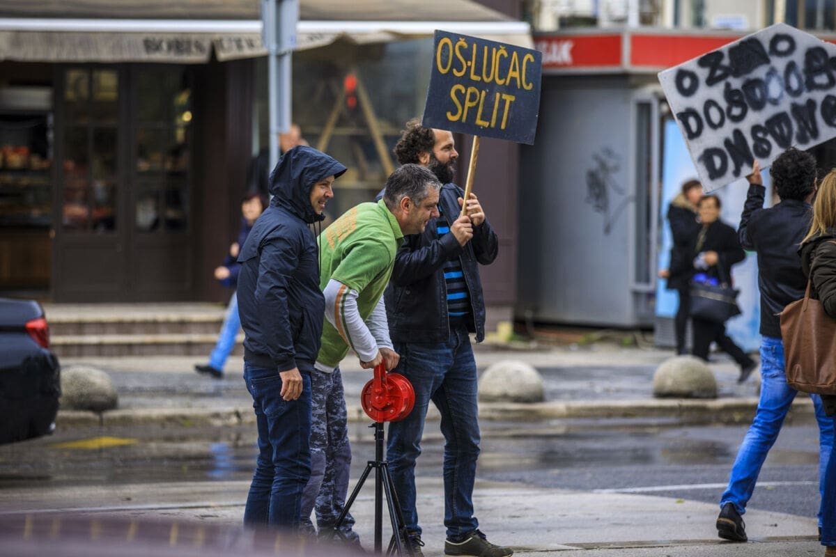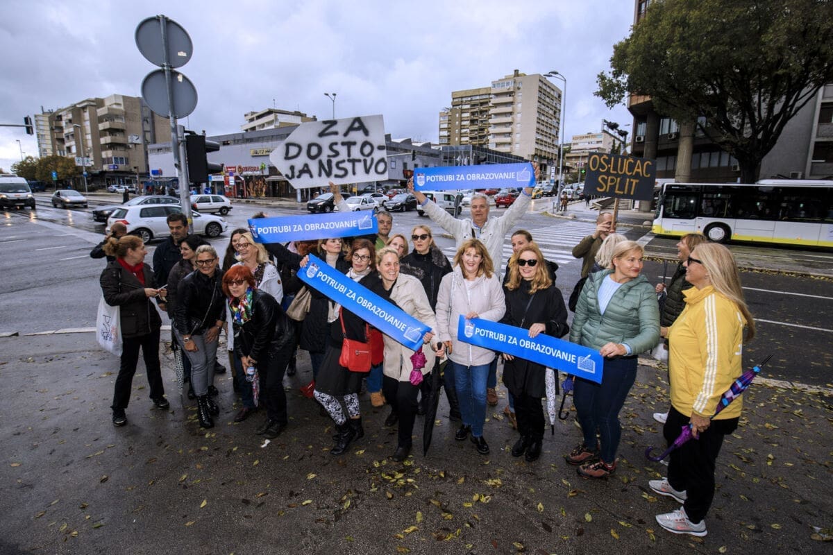 Dio prosvjednika susreli smo u Poljičkoj ulici u Splitu gdje su istaknuti transparenti poput "Za dostojanstvo", a na raskrižju Ulice Domovinskog rata i Dubrovačke ulice automobili su trubili u znak podrške štrajku prosvjetara.