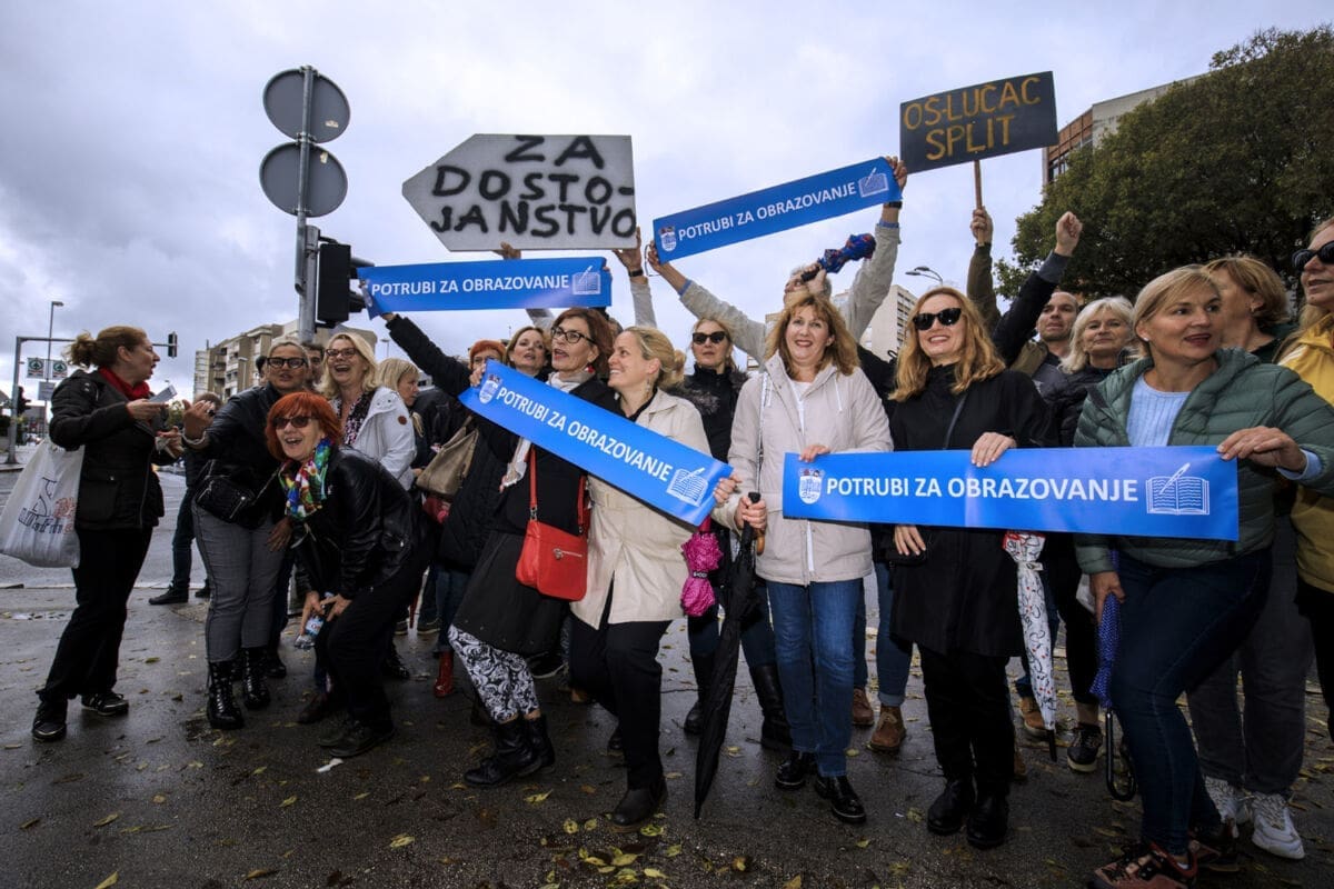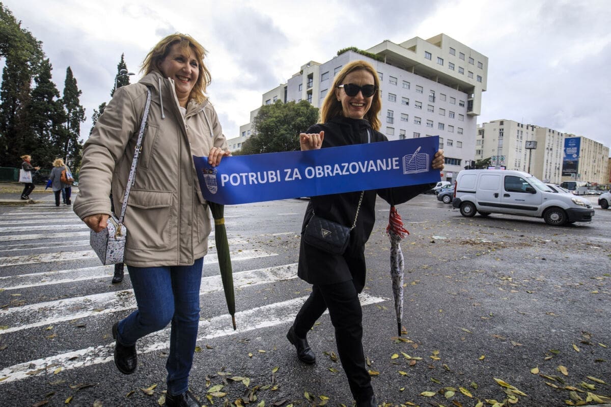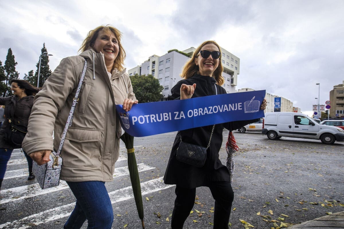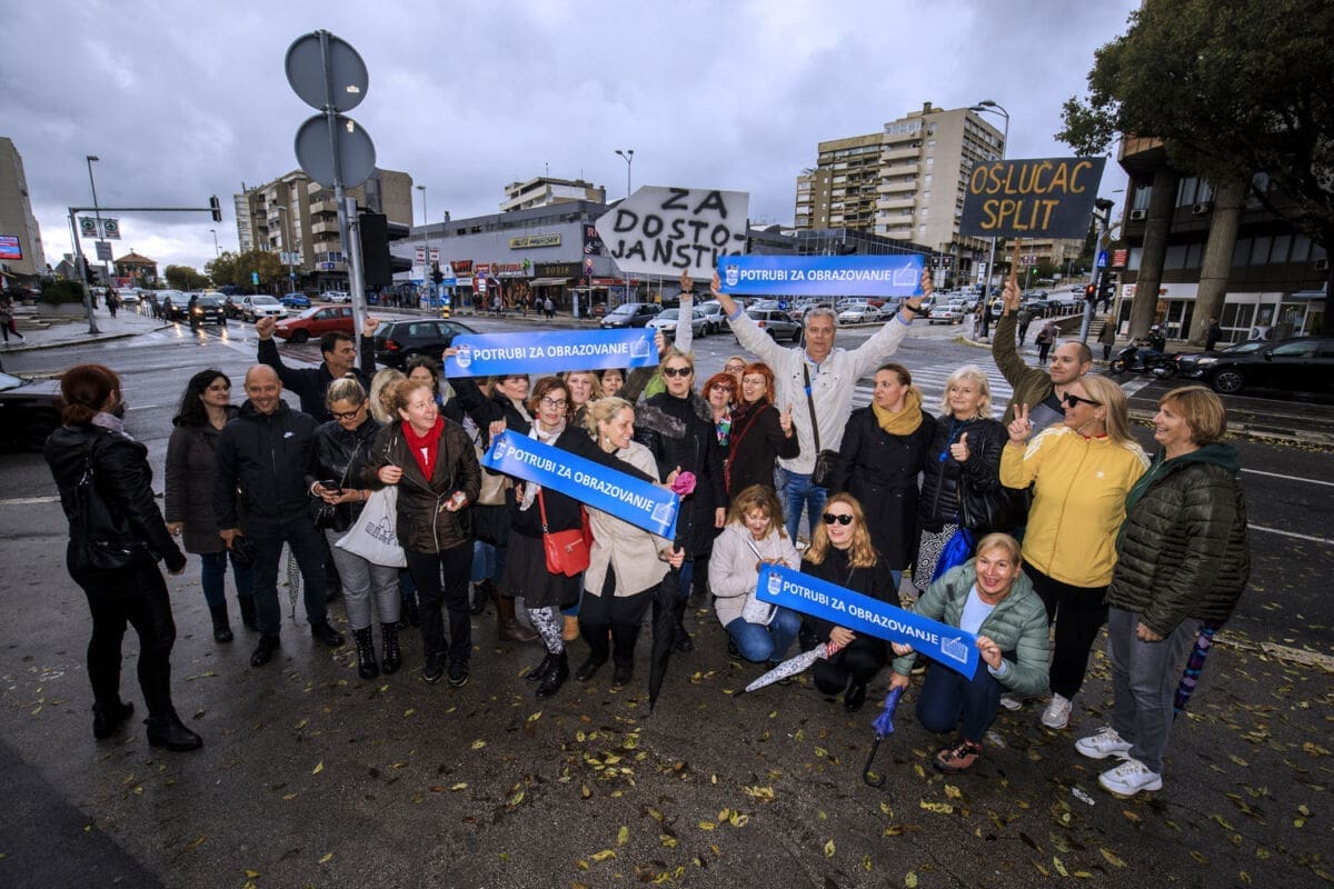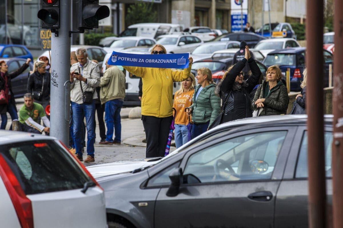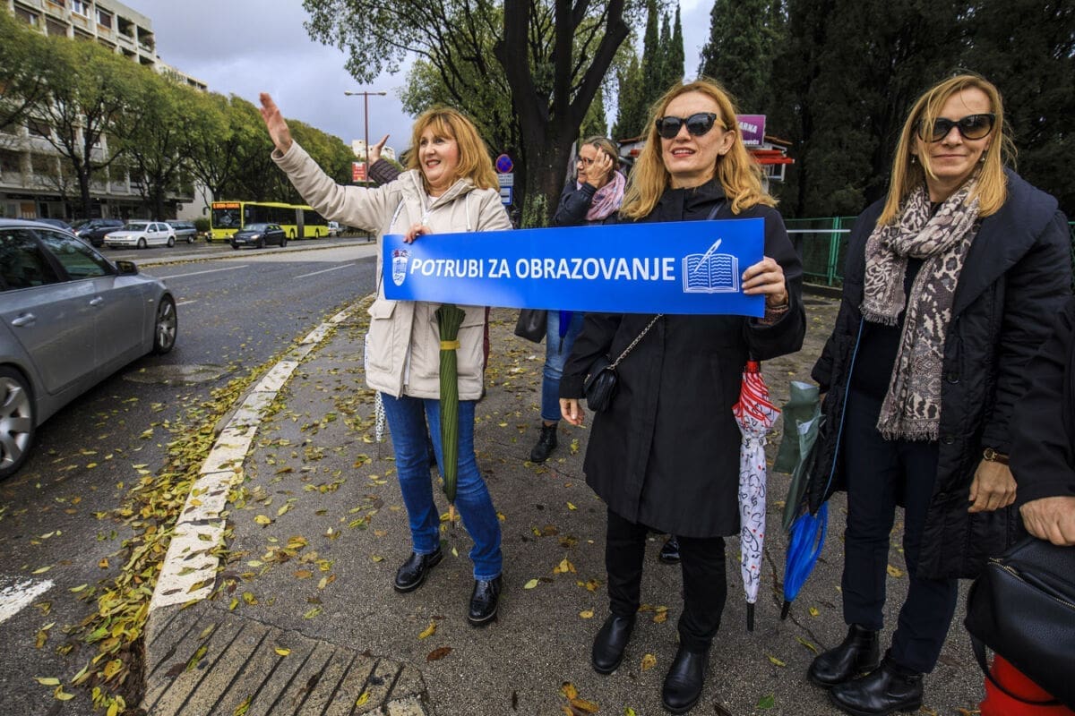 Školski sindikati su od utorka diljem zemlje u frontalnom štrajku. Danas su organizirali prosvjednu akciju "Potrubi za obrazovanje".