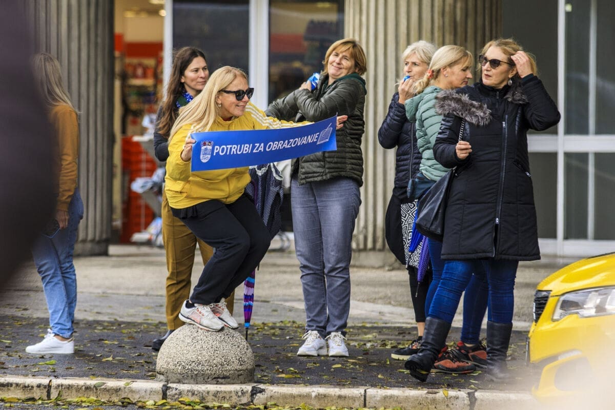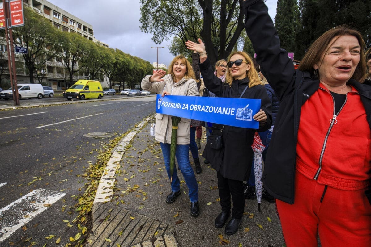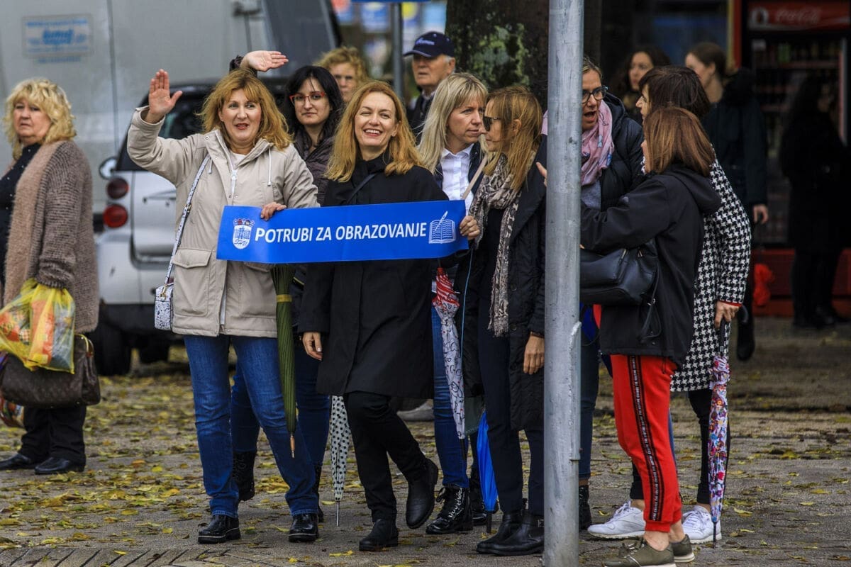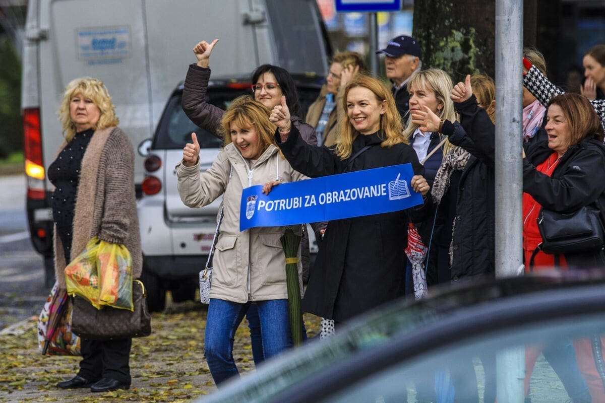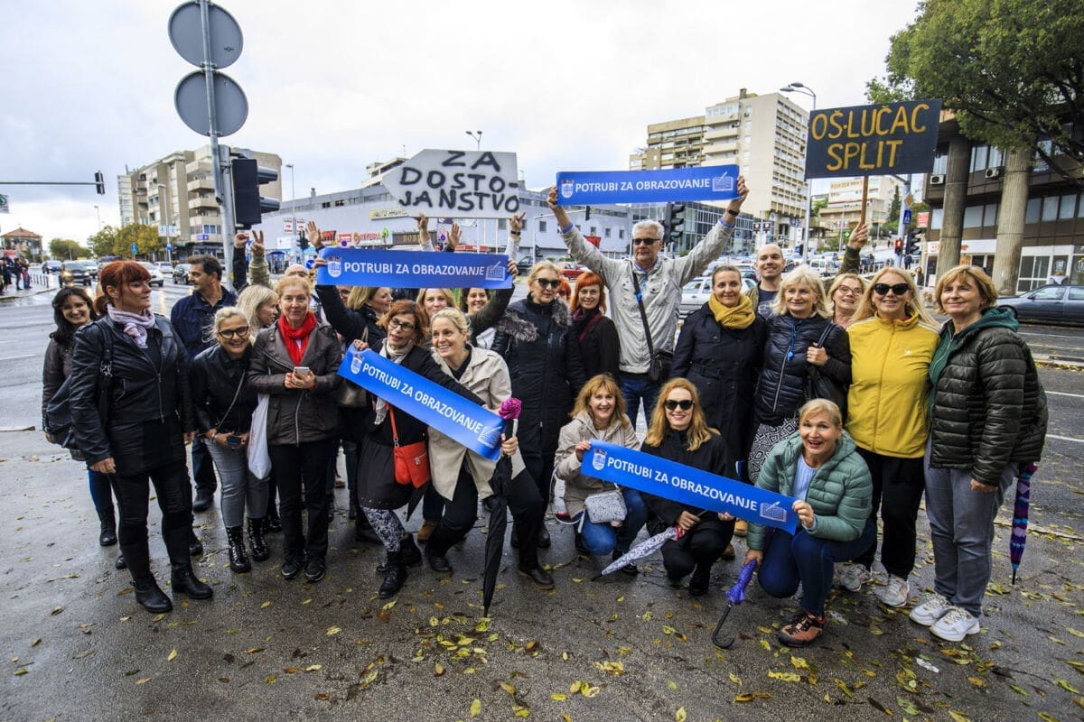 Školski sindikati su od utorka diljem zemlje u frontalnom štrajku. Danas su organizirali prosvjednu akciju "Potrubi za obrazovanje".