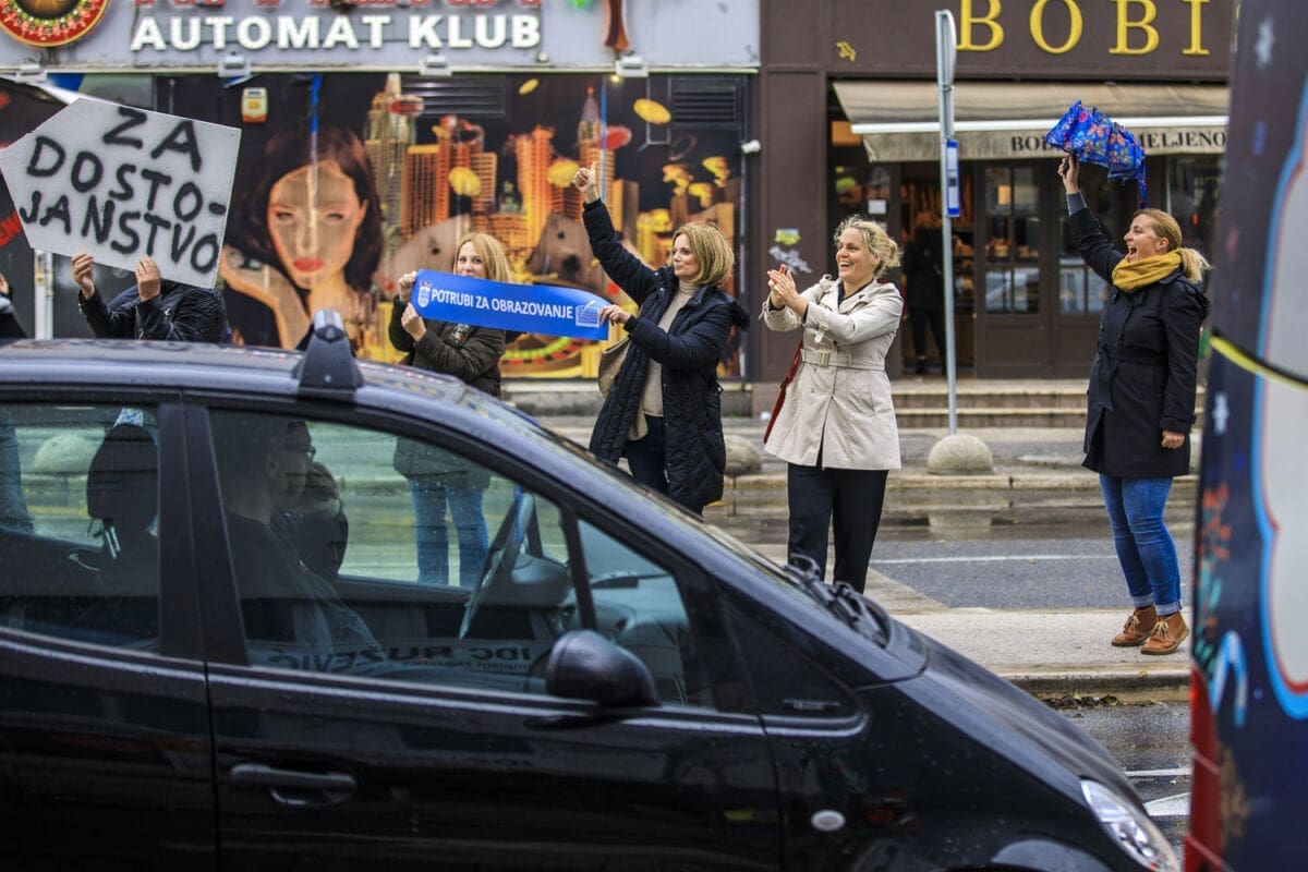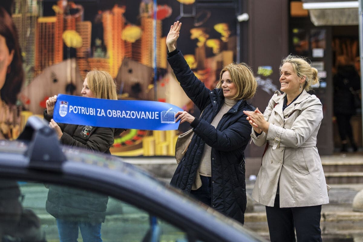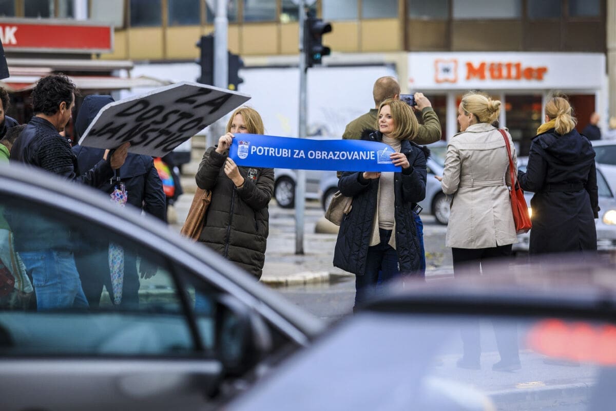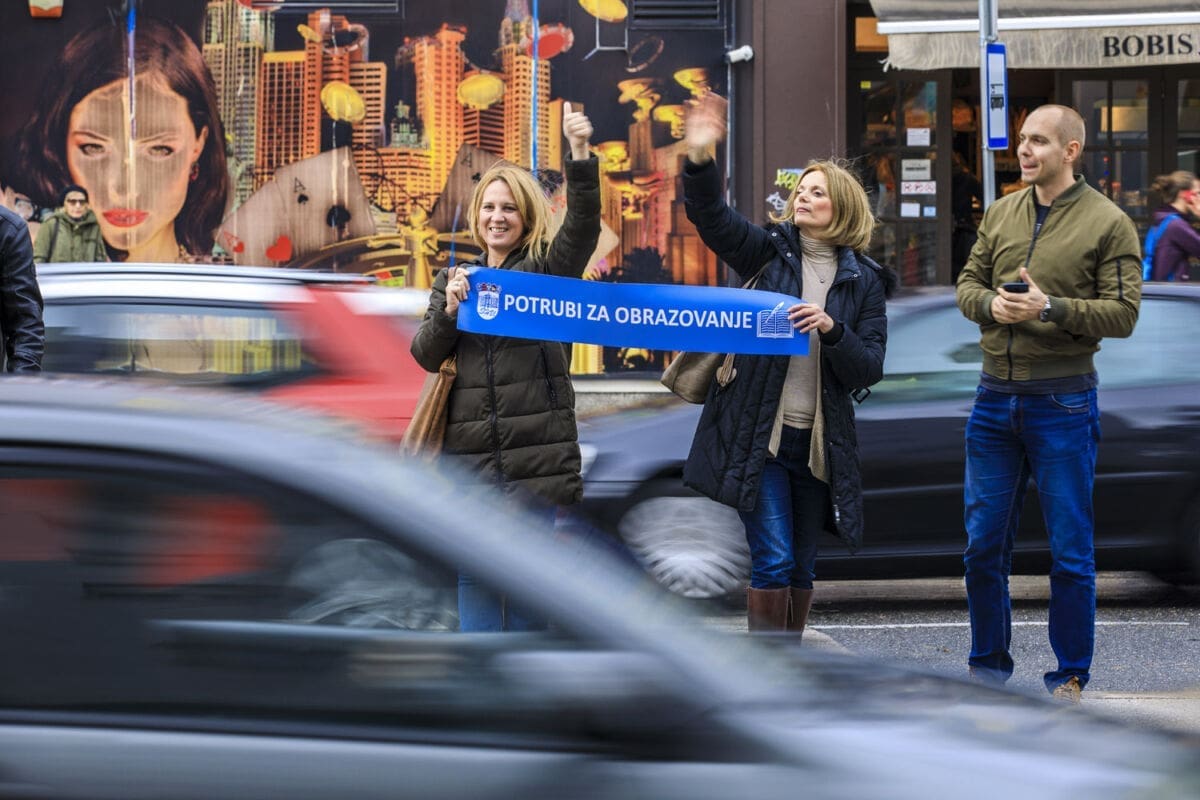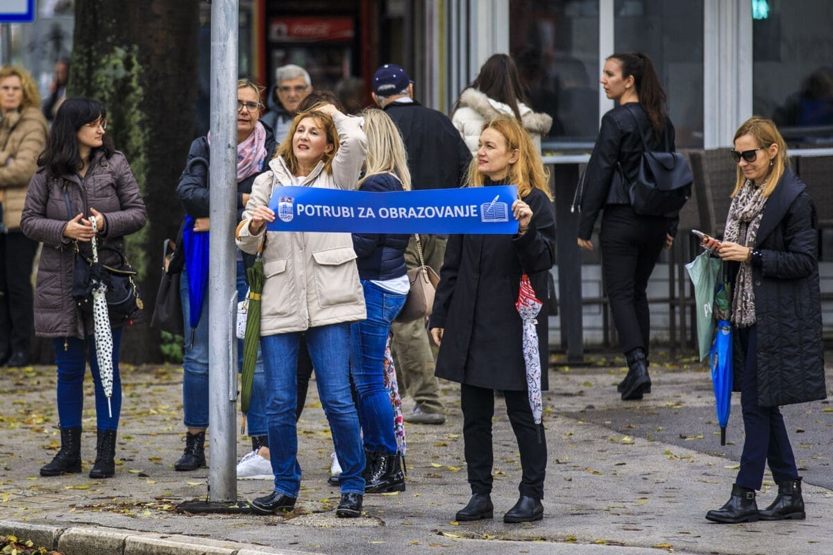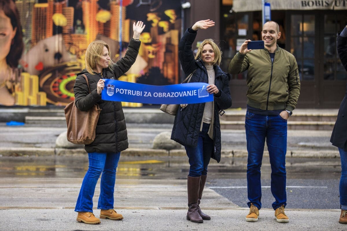 Školski sindikati su od utorka diljem zemlje u frontalnom štrajku. Danas su organizirali prosvjednu akciju "Potrubi za obrazovanje".