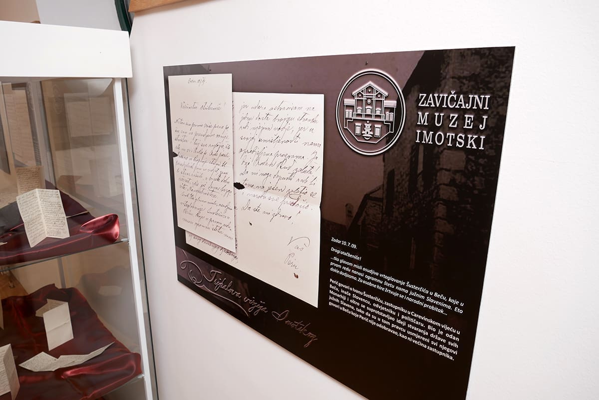 Radi se o izložbi 12 pisama koje je Josip Verilij Perić, tadašnji zastupnik u Dalmatinskom saboru u Zadru i Carevinskom vijeću u Beču, pisao tadašnjem gradonačelniku Imotskoga Josipu Tripalu. U pismima se spominju brojni projekti koje je ovaj dvojac realizirao u Imotskom, poput vodovoda, zgrade suda, građanske škole i slično, ali i oni koji nažalost nisu ostvareni, poput dovođenja željeznice u Imotski.