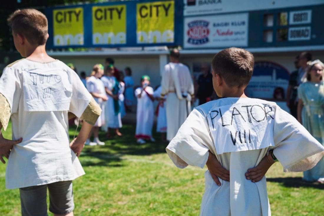 Rimljane su uprizorili učenici OŠ Pujanki iz Splita, a učenici 3.a OŠ Trilj uprizorili su Delmate. Sve se odvijalo pod budnim okom cara Doklecijana koji je i proglasio pobjednika ove zbilja povijesne nogometne utakmice. Pobjedu su odnijeli, a tko drugi nego Delmati. I to sa zasluženih 3:0. Pehar je tako otišao u Trilj iako su Rimljani negodovali uz povike i zvižduke. A da ipak nitko ne ostane praznih ruku pobrinula se nakladnička kuća Profil koja je učenicima ustupila i materijale za rekvizite, ali i pripremila prigodne poklončiće za današnji susret.