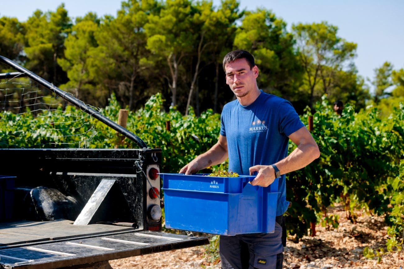 Iako je riječ o malom prinosu po trsu - redovi loze u novom vinogradu vinarije Markus još uvijek su mladi, tek u drugoj godini života, pa je ubrano oko 2000 kilograma grožđa na oko 7000 čokota - radi se o sjajnoj vijesti za vinariju nadomak Splita o kojoj se već dugo priča, kao i za sve ljubitelje vina u Hrvatskoj i susjedstvu.