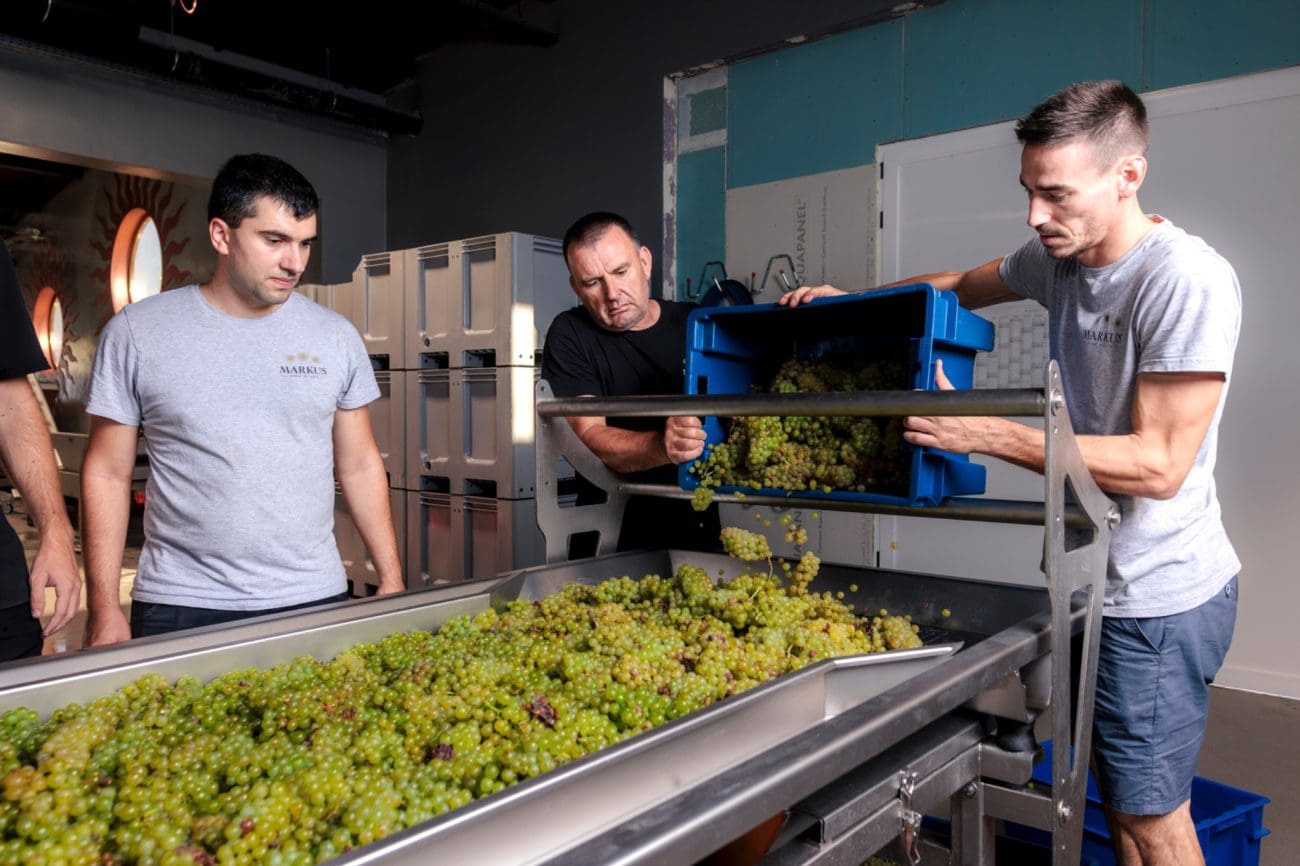 Iako je riječ o malom prinosu po trsu - redovi loze u novom vinogradu vinarije Markus još uvijek su mladi, tek u drugoj godini života, pa je ubrano oko 2000 kilograma grožđa na oko 7000 čokota - radi se o sjajnoj vijesti za vinariju nadomak Splita o kojoj se već dugo priča, kao i za sve ljubitelje vina u Hrvatskoj i susjedstvu.