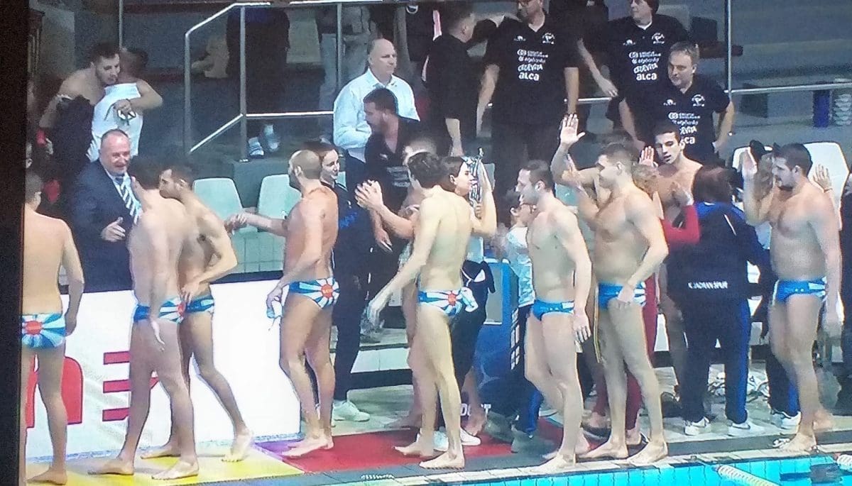 Uslijedilo je pravo slavlje, svi u bazen, uključujući i trenera Aljošu Kunca.