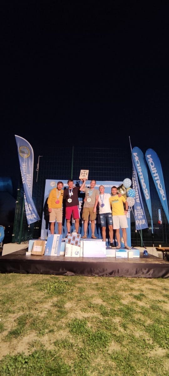 Ukupni pobjednici petog izdanja utrke Perun adventure race su tim Divlji badem u sastavu Nenad Keč i Mihovil Stamičar. Njima je za 72 kilometra zahtjevne staze trebalo 11 sati i 3 minute. Tim Rogačak (Ivan Roguljić i Boris Koračak) završili su na drugom mjestu, iako se nakon prve trkačke dionice koju su odradili bolje od svih činilo da bi mogli iznenaditi i uzeti svoj prvi naslov pobjednika u Podstrani. Ipak, druga biciklistička dionica za njih je bila kobna, Nakon 12. kontrolne točke dogodila im se orijentacijska pogreška, a vrijeme koje su tu izgubili više nisu uspjeli nadoknaditi. Treća u ukupnom poretku bila je ekipa Cetina Adventure FAF (Vedran Ugrin i Alen Bikić).
