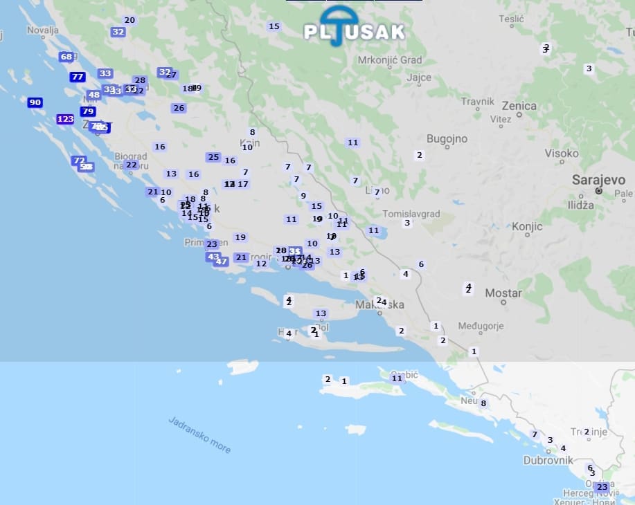Obilna kiša počela je padati na širem splitskom području, a do 23 sata palo je 20 litara, što su prve konkretne oborine ovog studenog. Zasad se obilnije oborine južnije od Splita tek očekuju.
