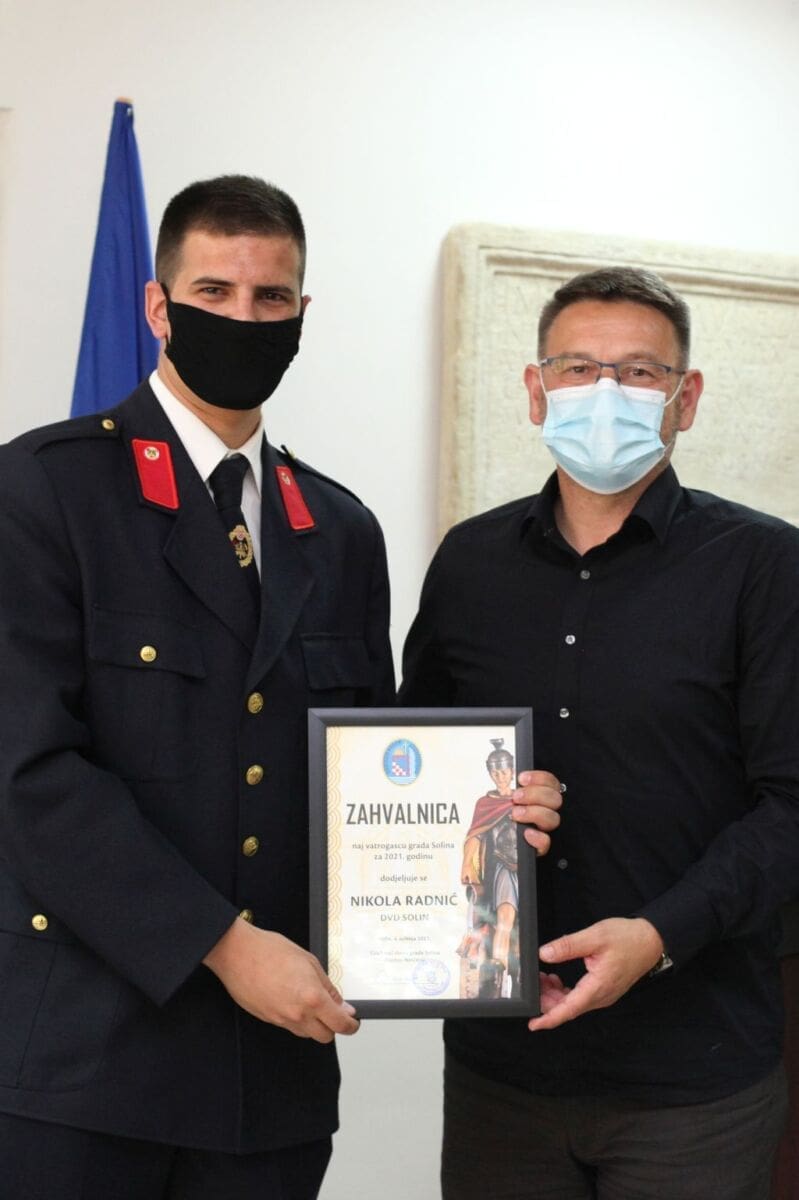 U utorak 4. svibnja u povodu obilježavanja blagdana sv. Florijana, zaštitnika vatrogasaca, gradonačelnik Dalibor Ninčević, zamjenik gradonačelnika Ivica Rakušić i pročelnik Odjela za javne djelatnosti Darko Bilandžić tradicionalno su u ime Grada Solina dodijelili priznanja dvojici vatrogasaca, jednom članu iz DVD-a „Solin“ i drugom iz DVD-a „Vranjic“, koji su odlukom svojih kolega, ponijeli nagradu najboljih u 2021. godini.