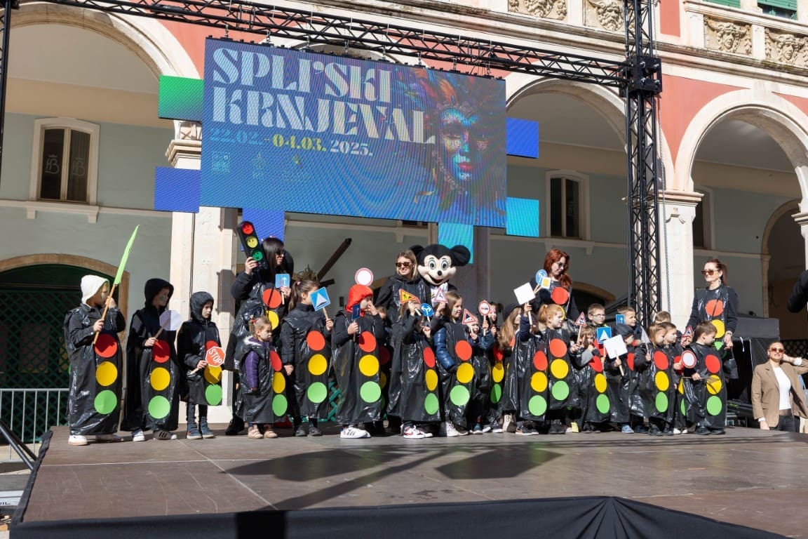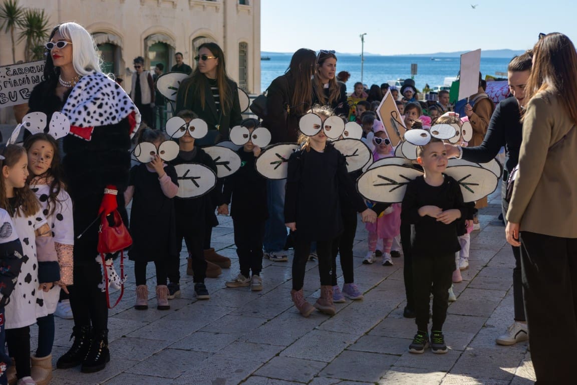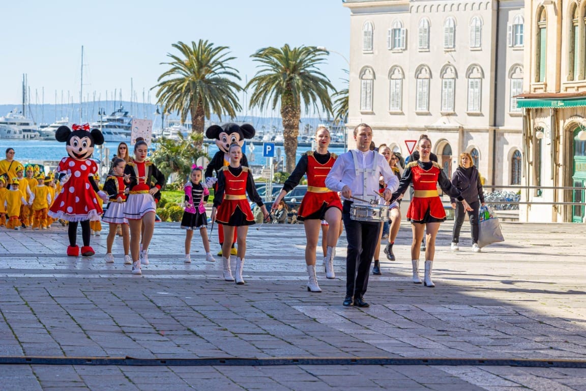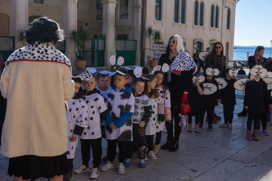 Maškarana povorka dječjih vrtića, na čelu s Mažoretkinjama grada Splita i Limenom glazbom Žrnovnica, krenula je od HNK kroz Marmontovu malo iza 10 sati. Sudjelovalo je 11 dječjih skupina iz splitskih vrtića DV Marjan - Palmina, DV Tutti Frutti, DV Cvit Mediterana - Lasta, DV Čarobni pianino -Brodarica, Mejaši i Mejaši II, DV Hugo, DV Radost - Šareni svijet, Popaj, Nešpulica i Višnjica i DV Bili tić.