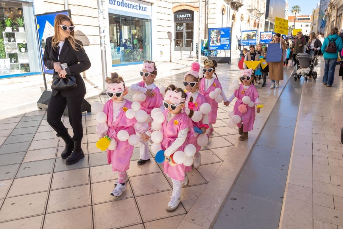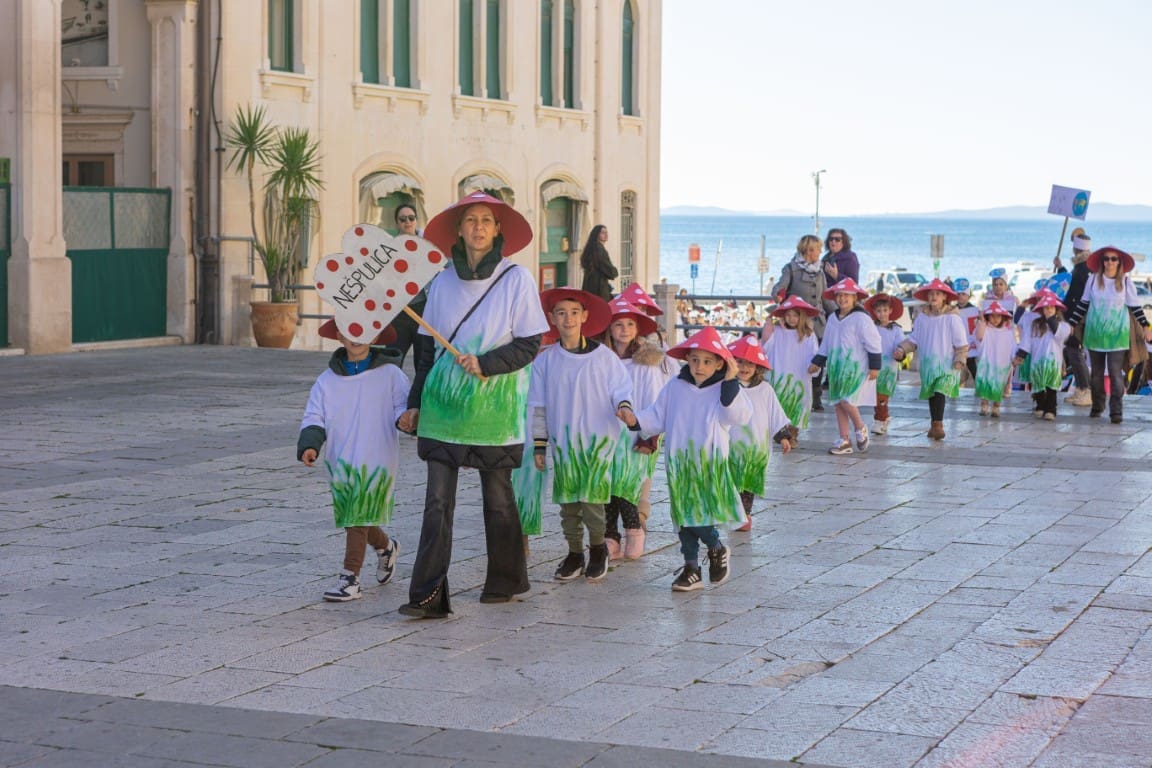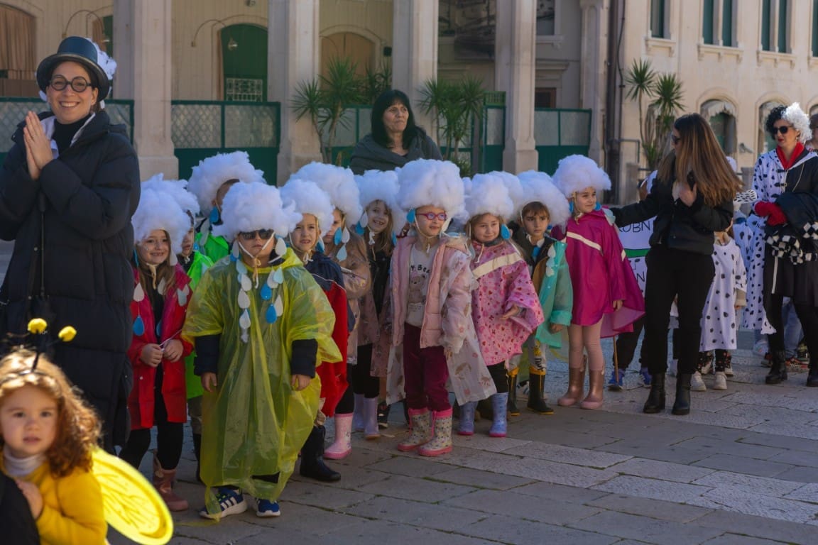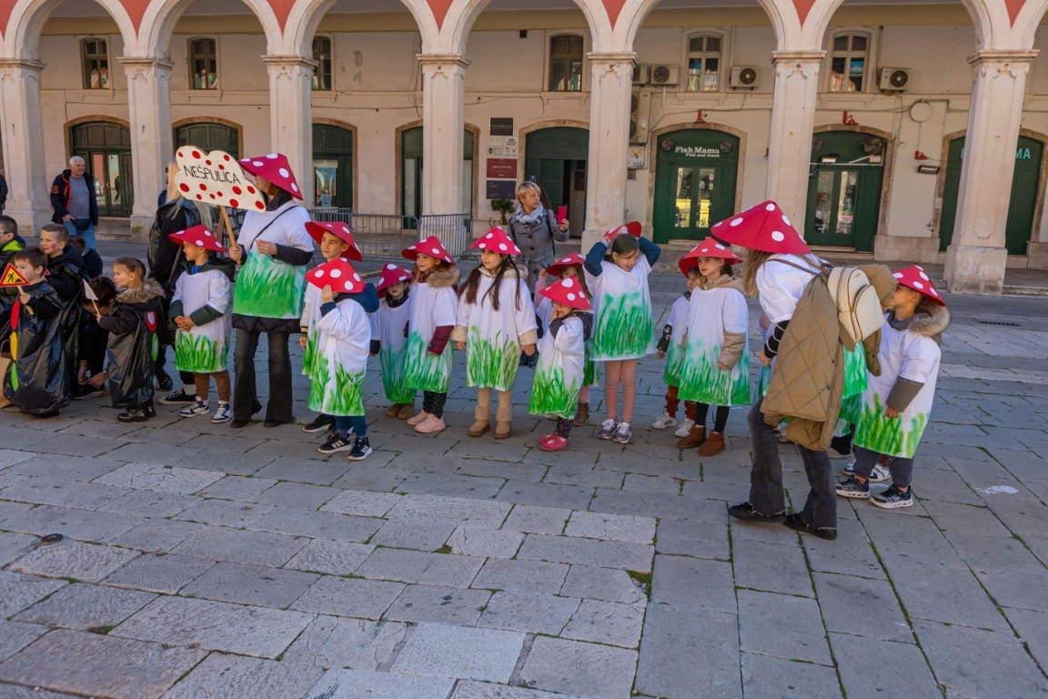 Maškarana povorka dječjih vrtića, na čelu s Mažoretkinjama grada Splita i Limenom glazbom Žrnovnica, krenula je od HNK kroz Marmontovu malo iza 10 sati. Sudjelovalo je 11 dječjih skupina iz splitskih vrtića DV Marjan - Palmina, DV Tutti Frutti, DV Cvit Mediterana - Lasta, DV Čarobni pianino -Brodarica, Mejaši i Mejaši II, DV Hugo, DV Radost - Šareni svijet, Popaj, Nešpulica i Višnjica i DV Bili tić.